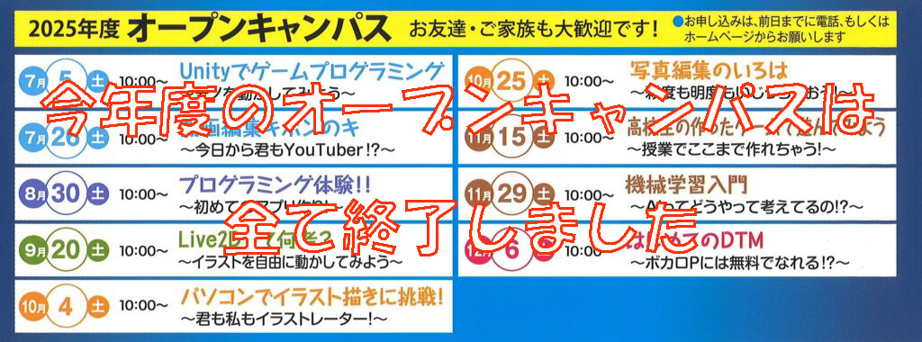 野田鎌田学園高等専修学校では、毎年7月から12月の間、たくさんのオープンキャンパスのプログラムをご用意しています。