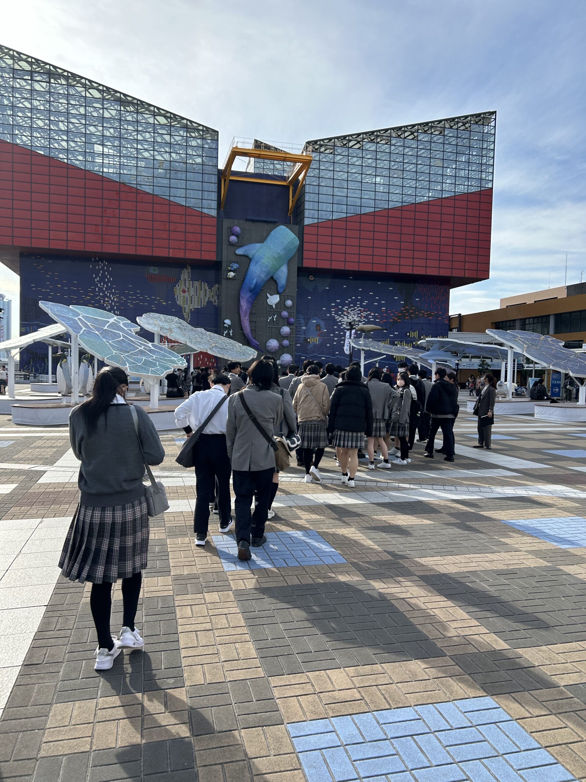 昼食を終えるとバスで「海遊館」へ向かいました。ここでは巨大なジンベイザメやイルカ、ペンギンといった様々な海洋生物を見ることができました!