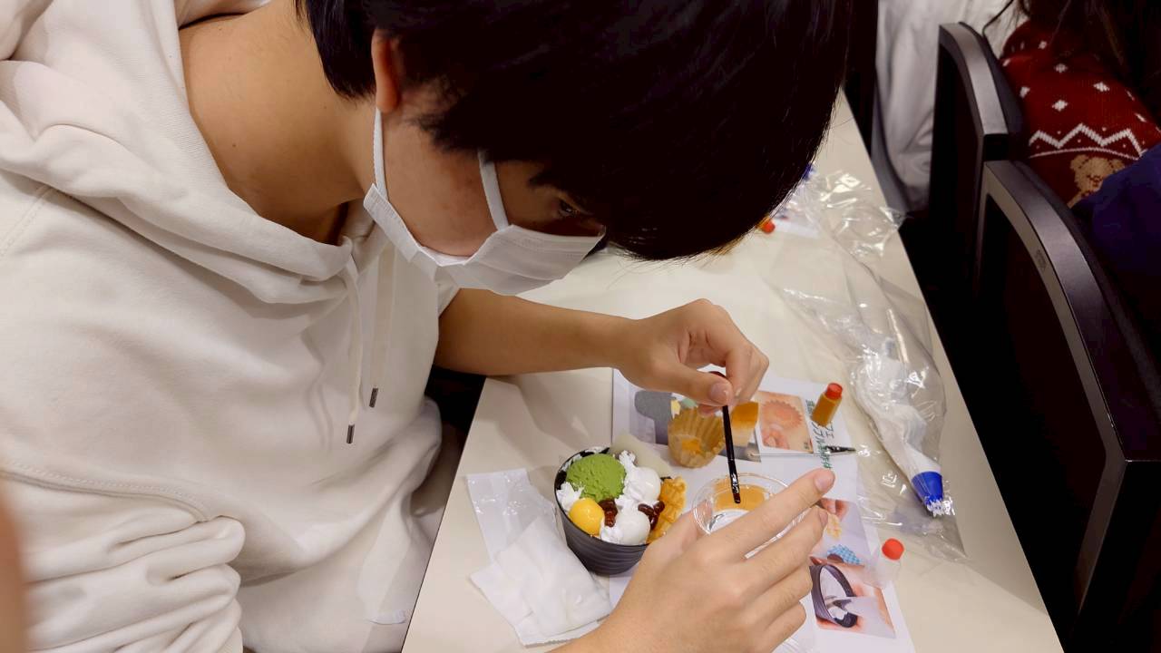 メモクリップは食品サンプルを用いてパフェを作成しました!陶芸は各々が好みの模様を作ってお皿を作りました!Tシャツ作りは事前に描いていた絵を当日にプリントしました!
