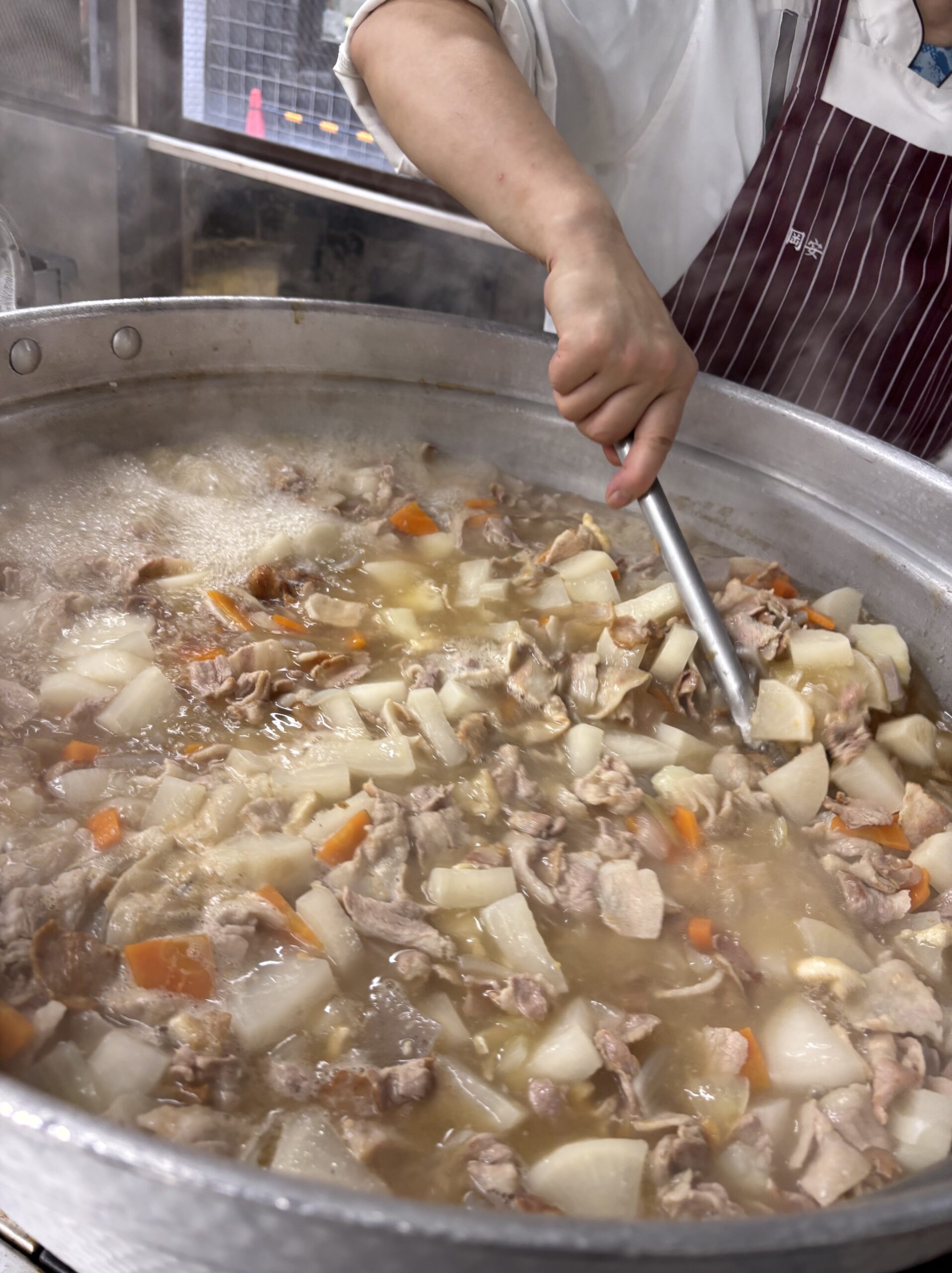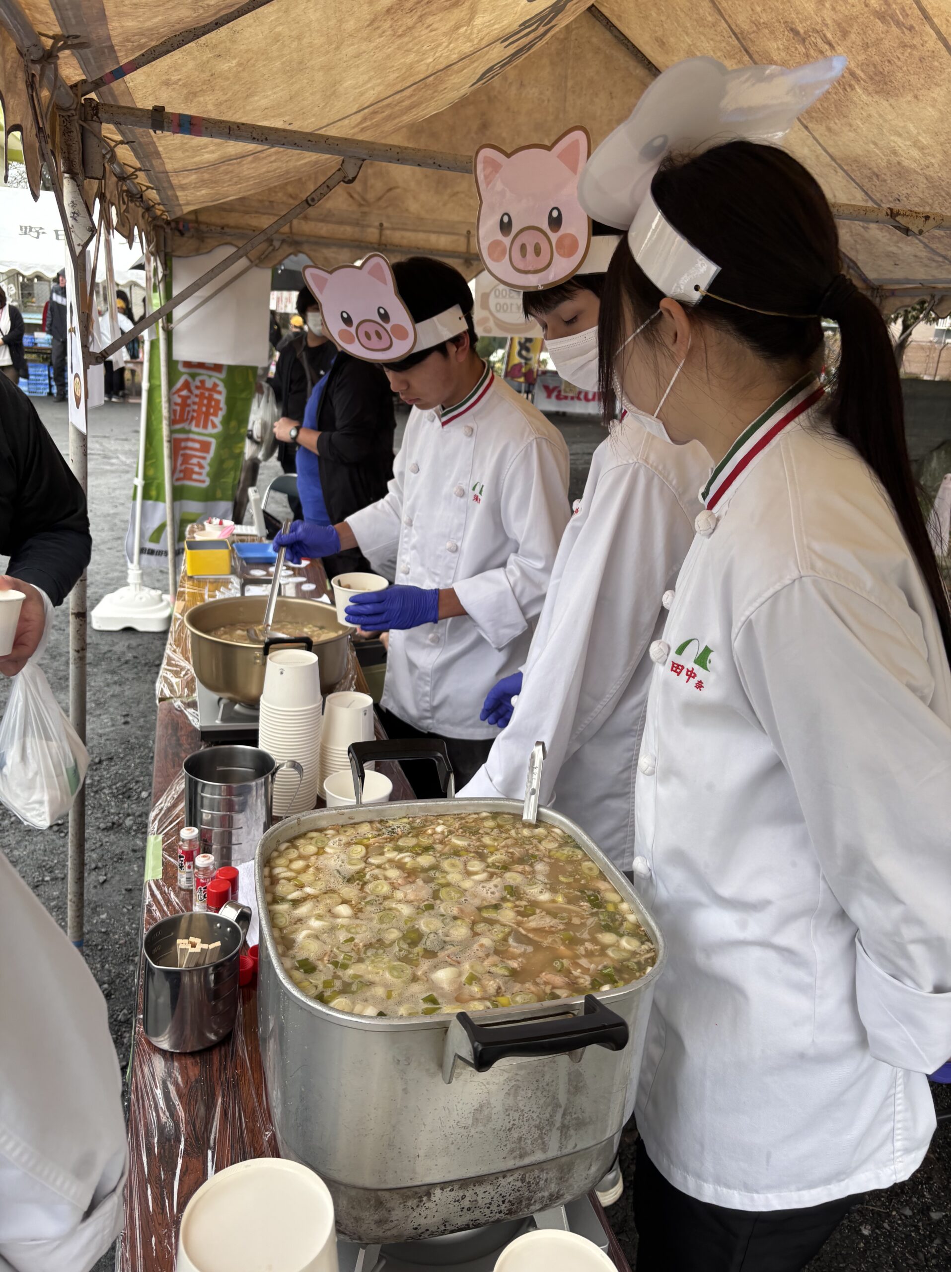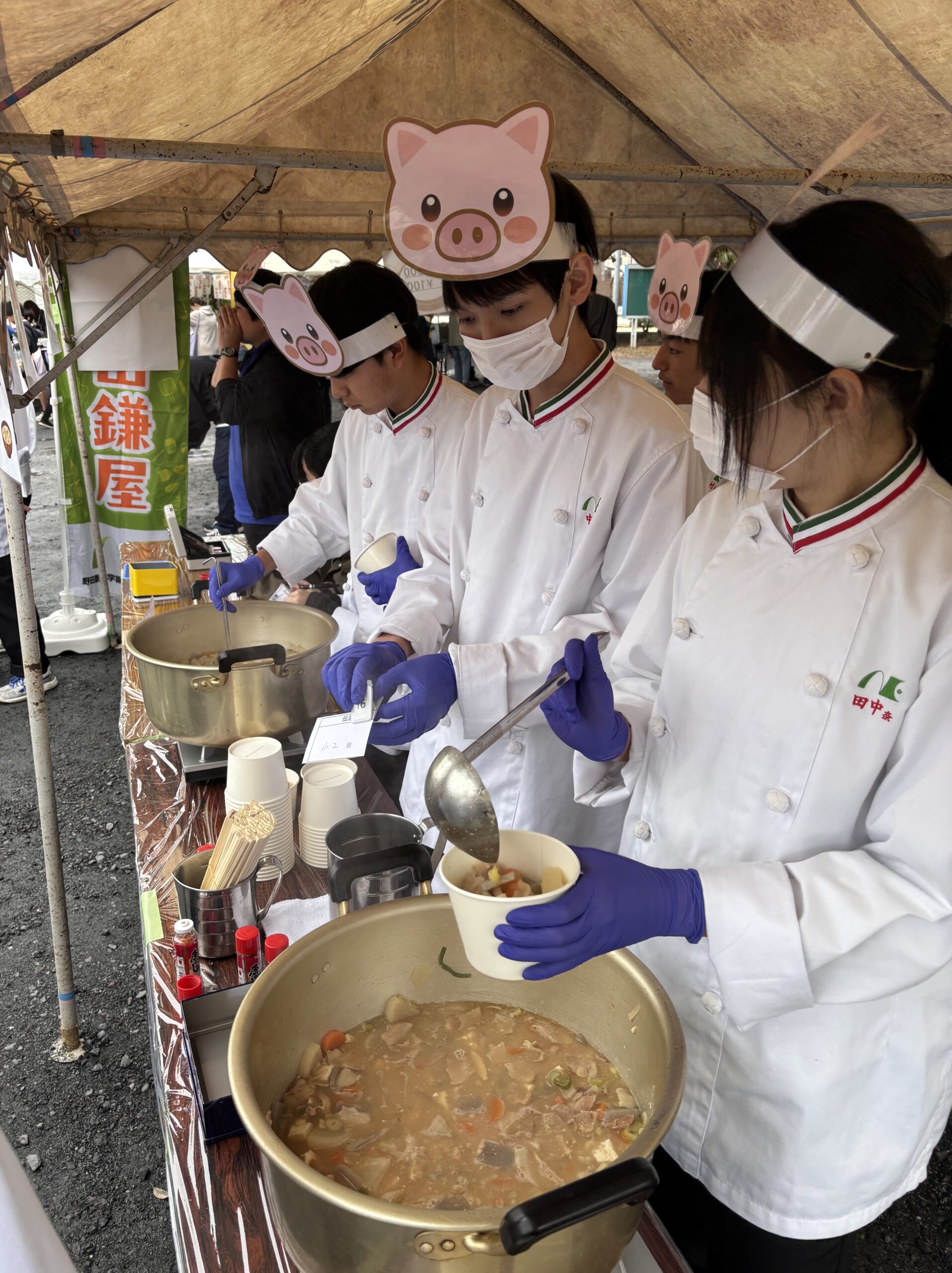 約800食の豚汁を1・2年生の生徒が作り、販売しました。