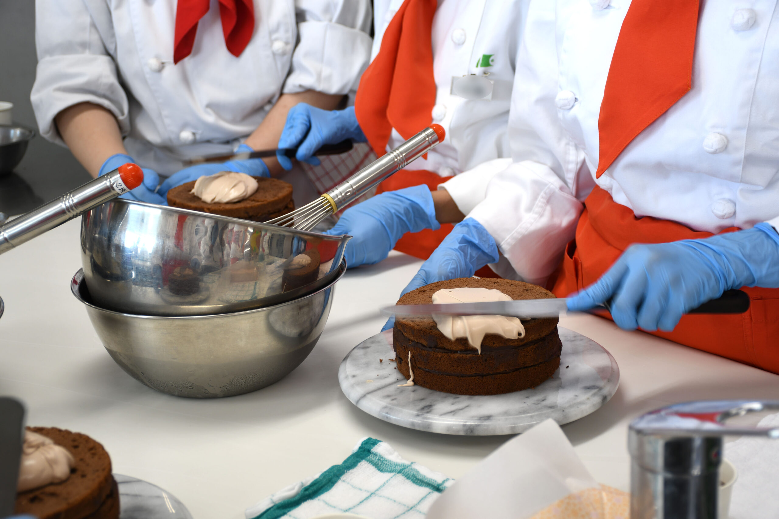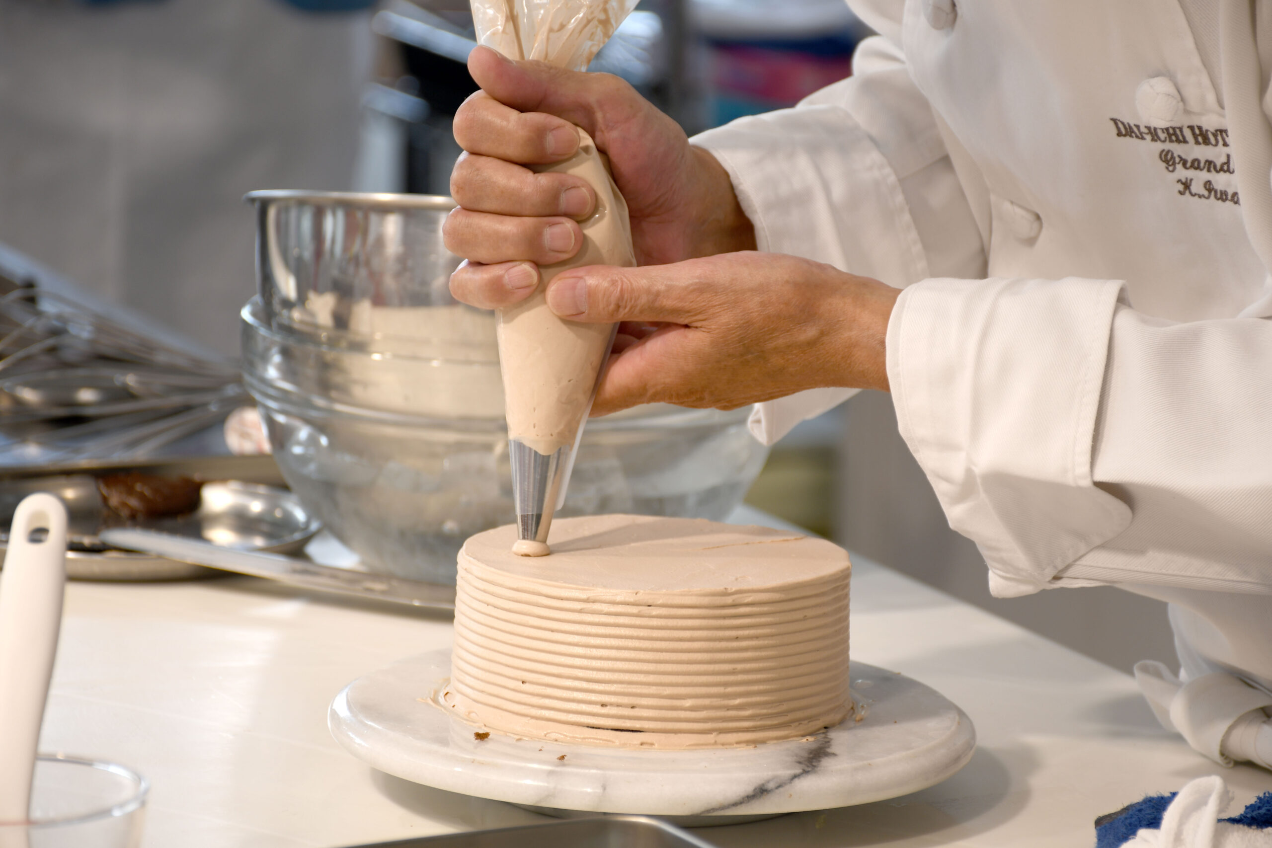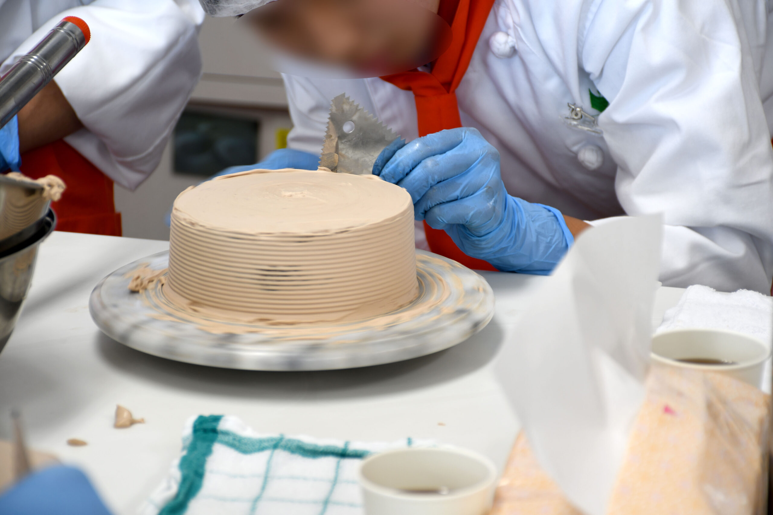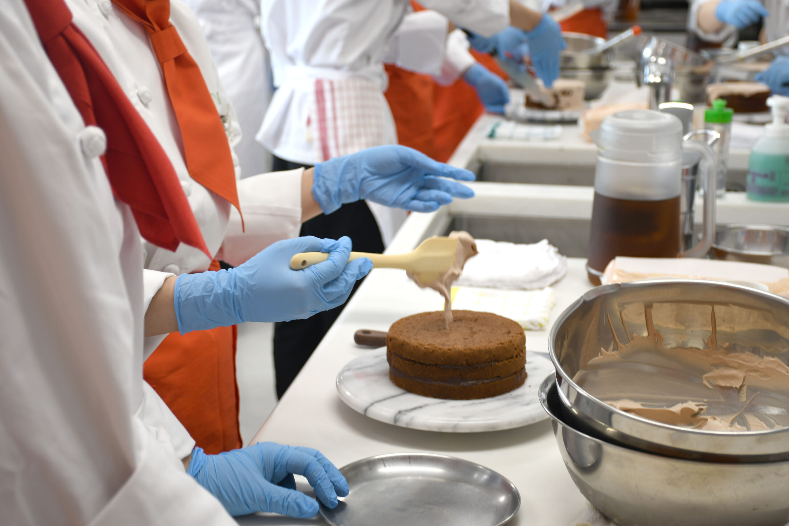 初めてのナッペ(ソースやクリームをジェノワーズにコーティングすること)を、