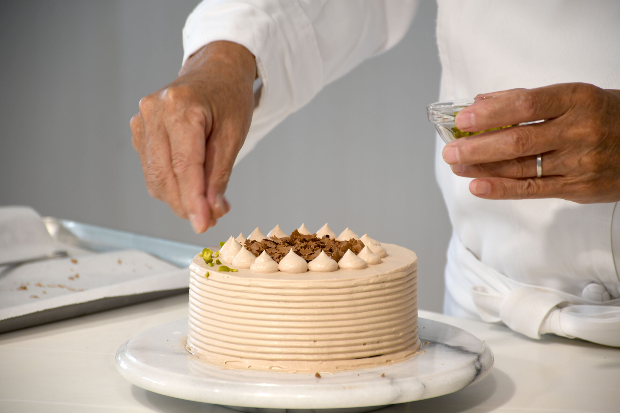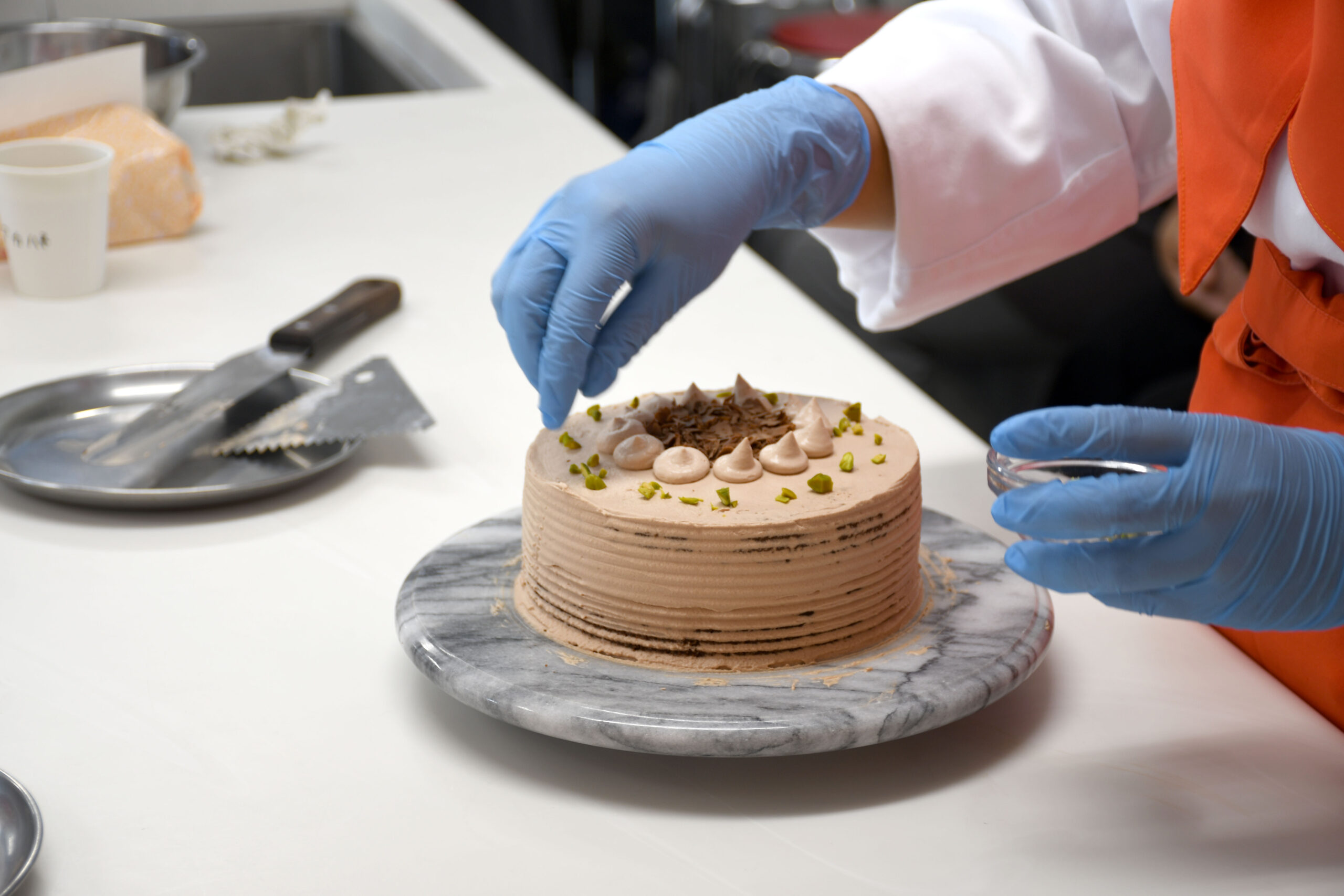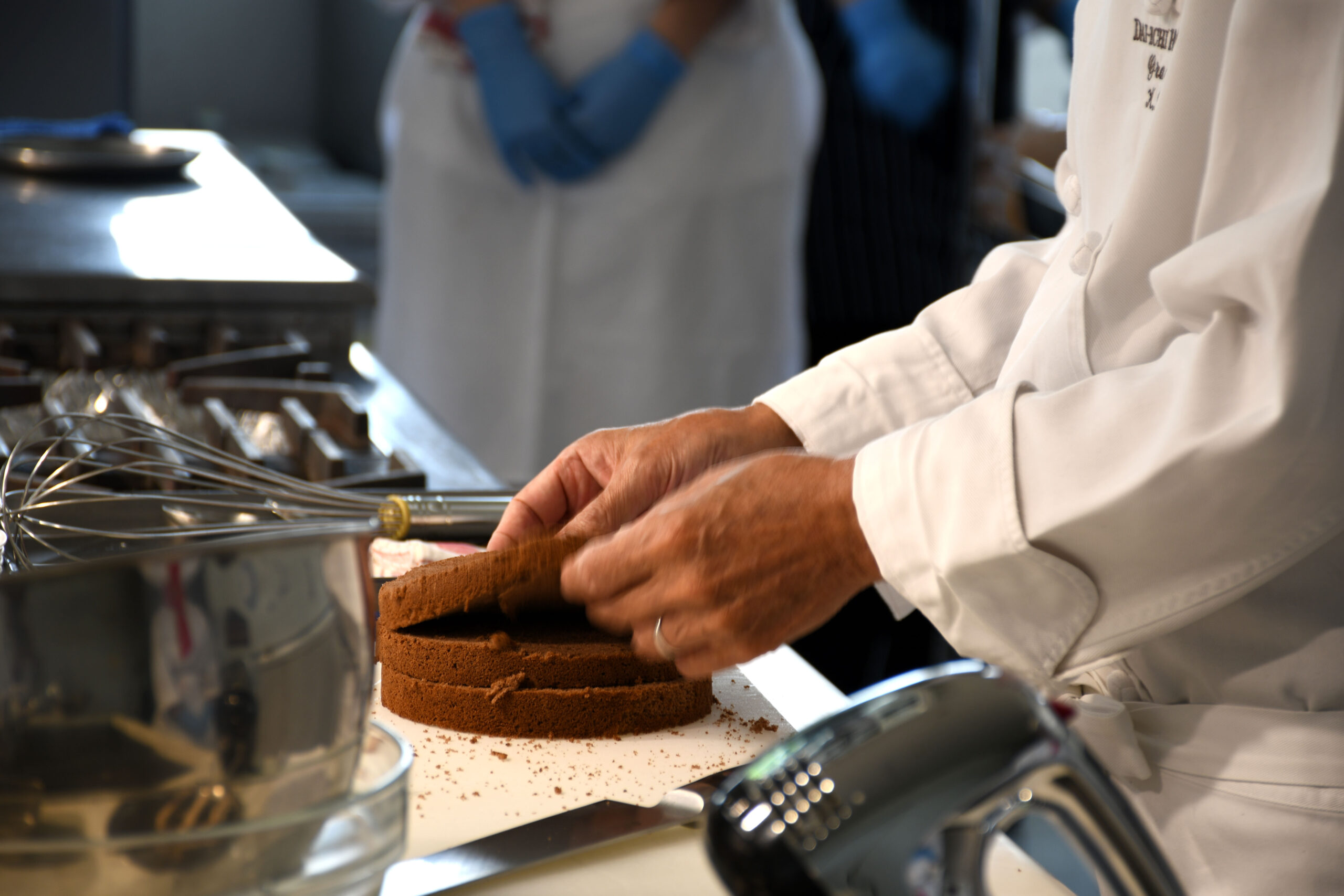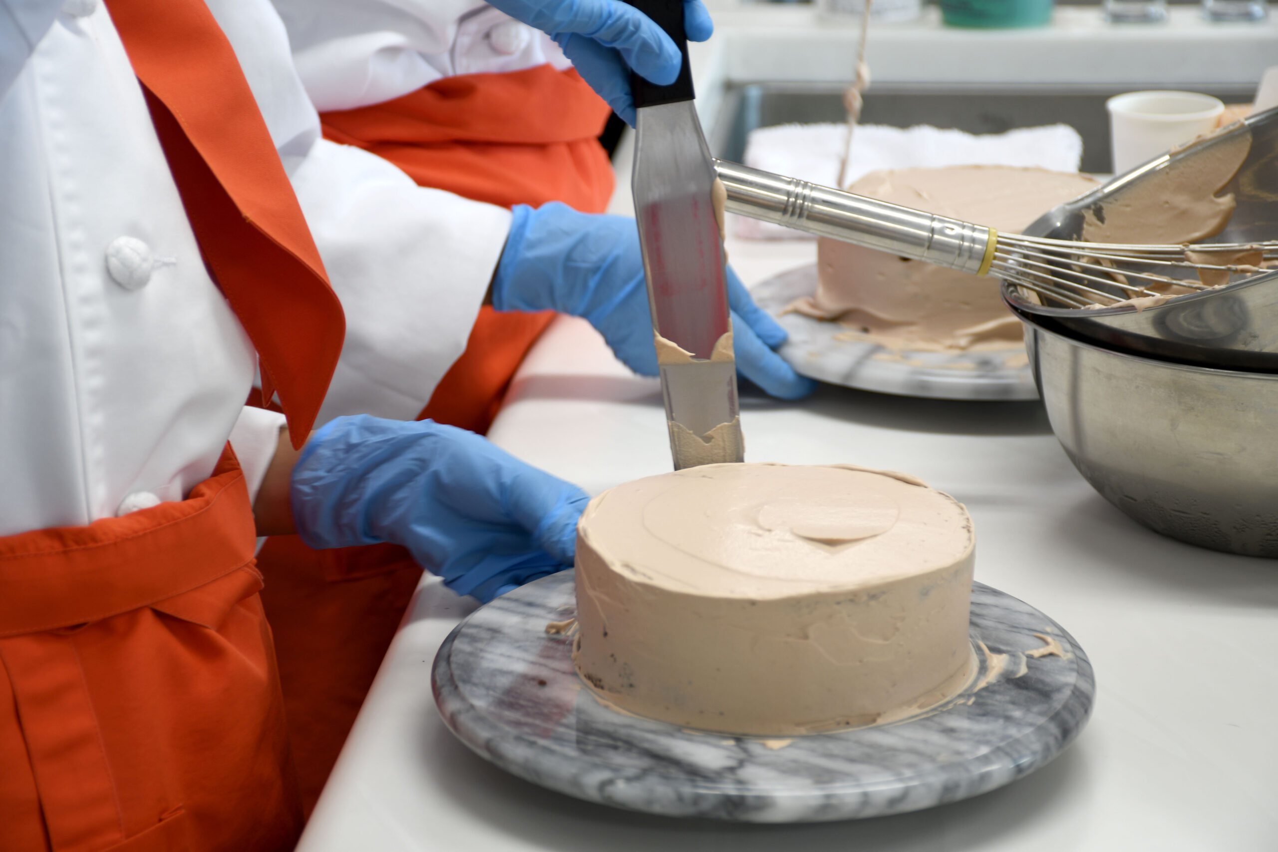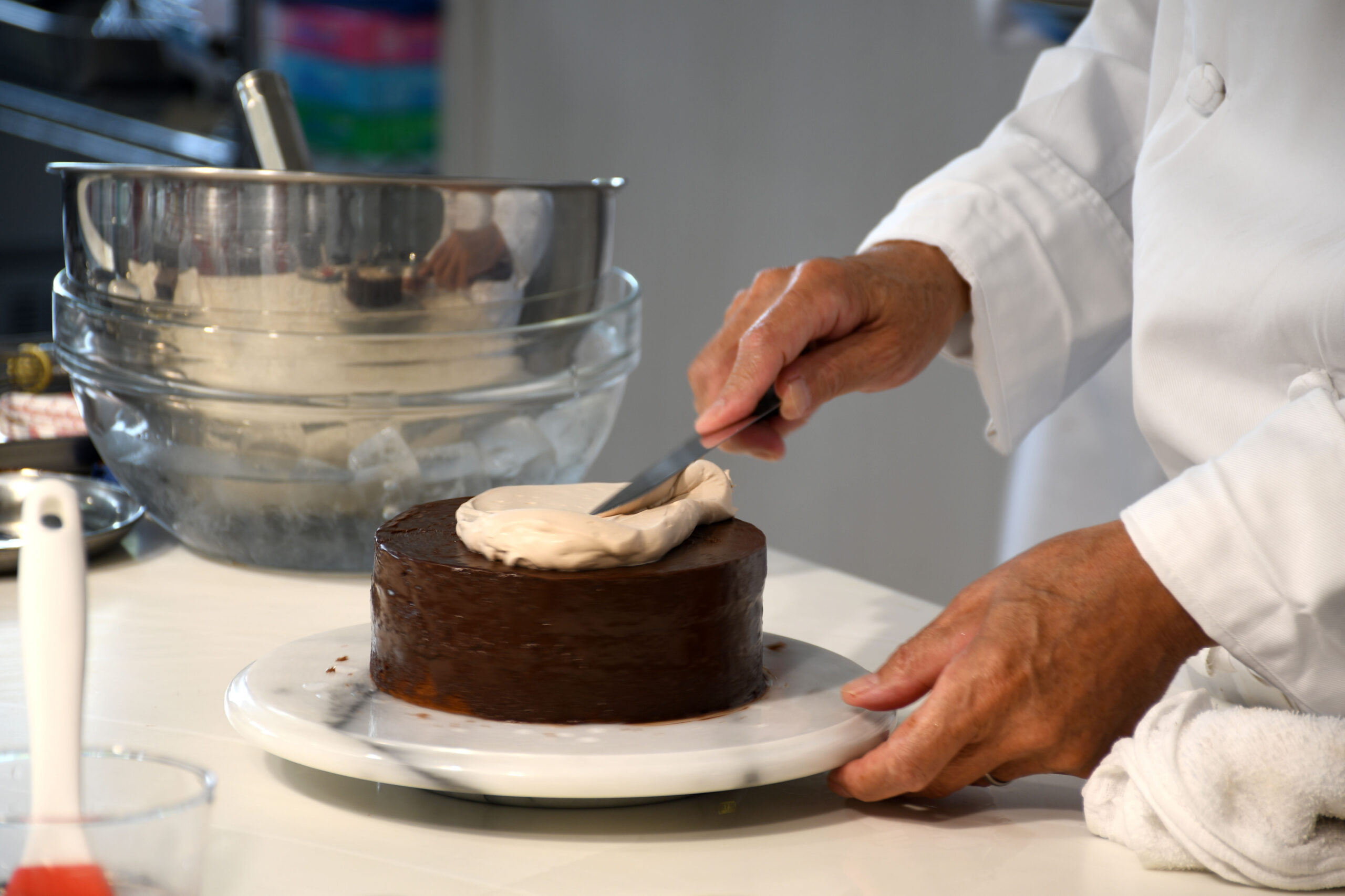 初めてのナッペ(ソースやクリームをジェノワーズにコーティングすること)を、