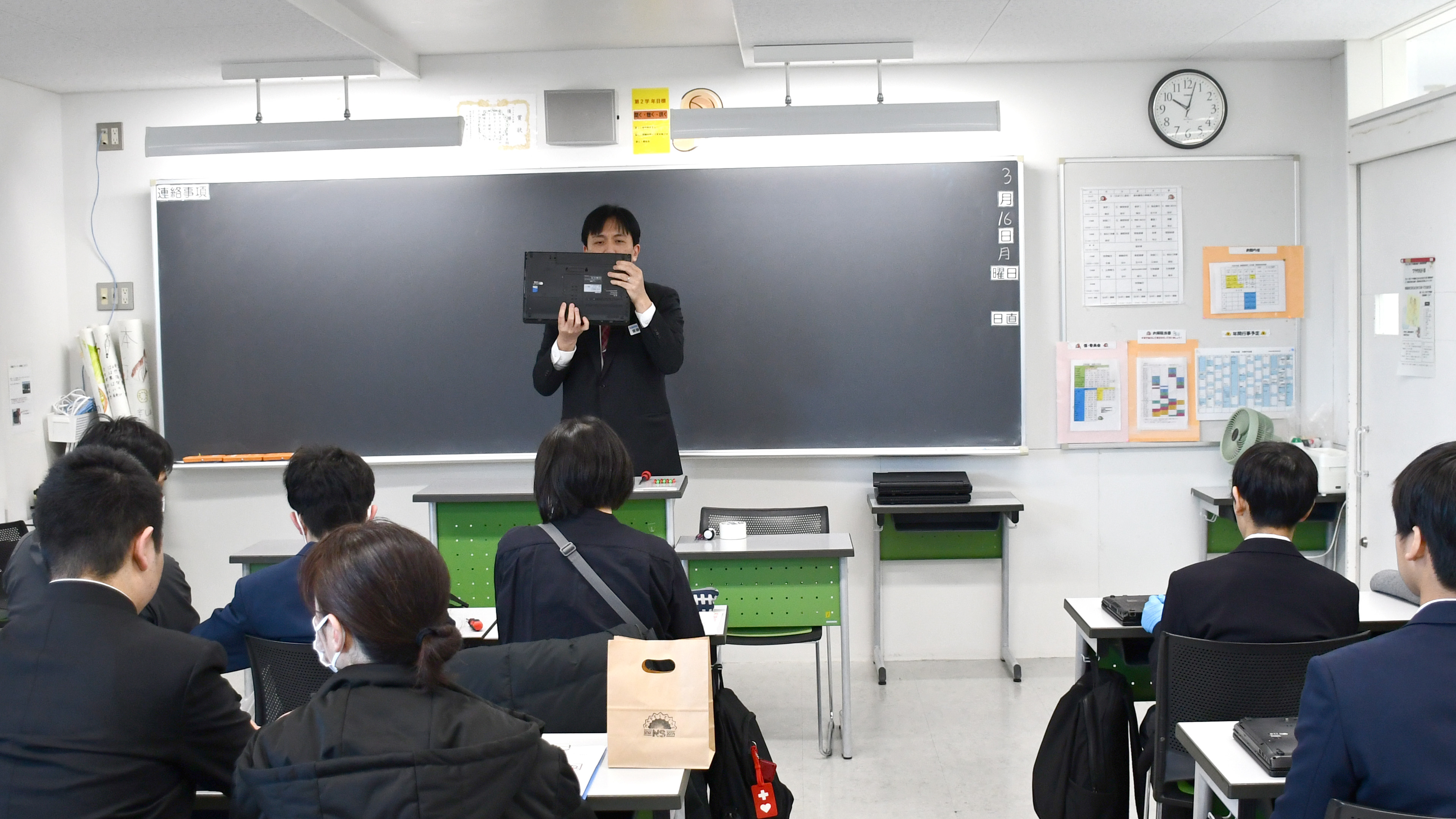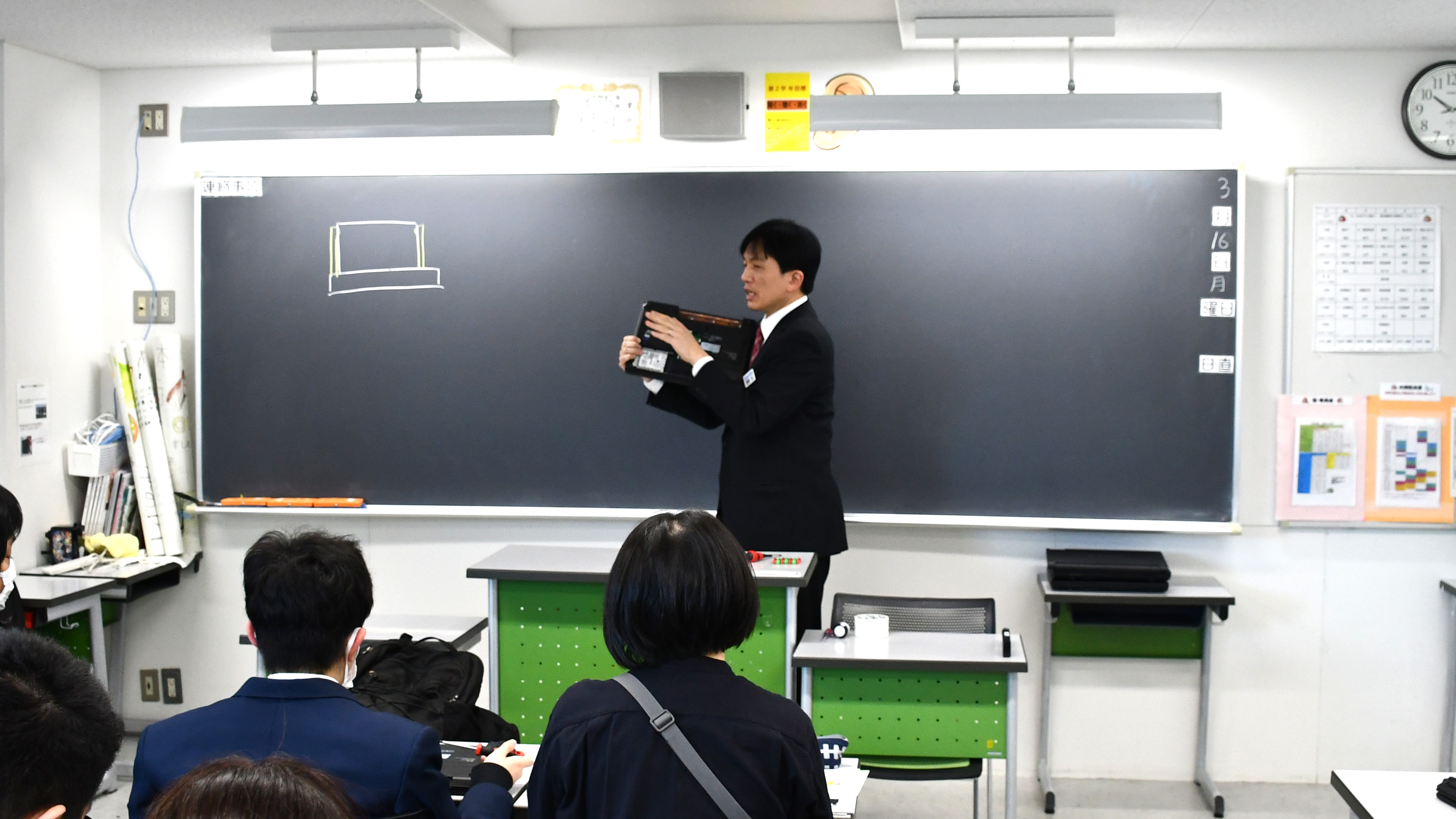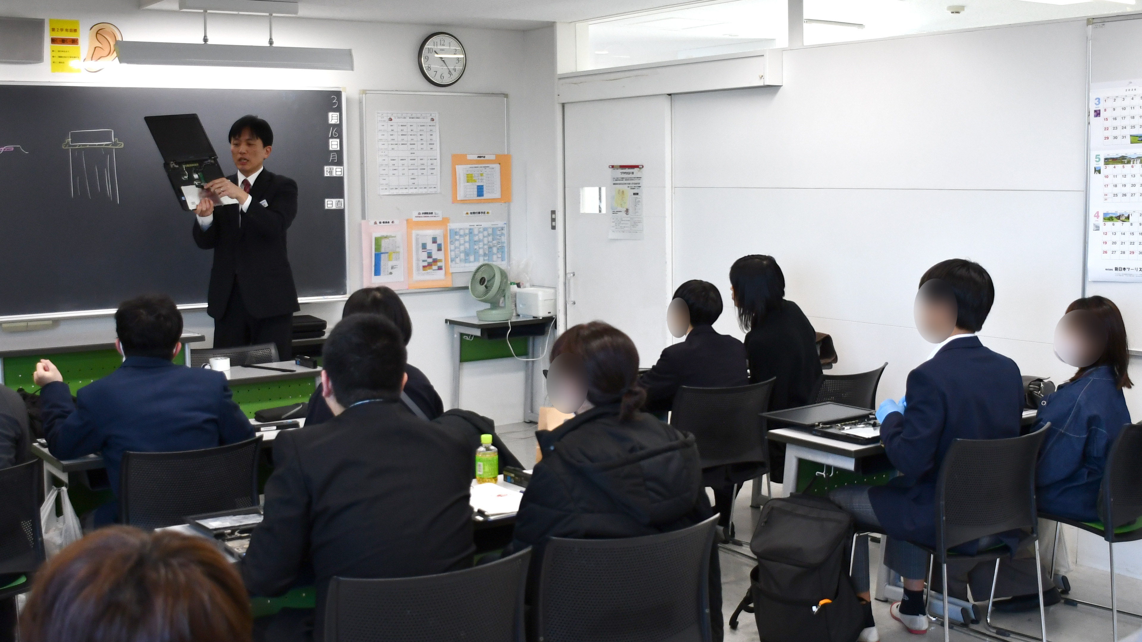 ノートパソコンを解体し、パーツを手に取って観察したり、