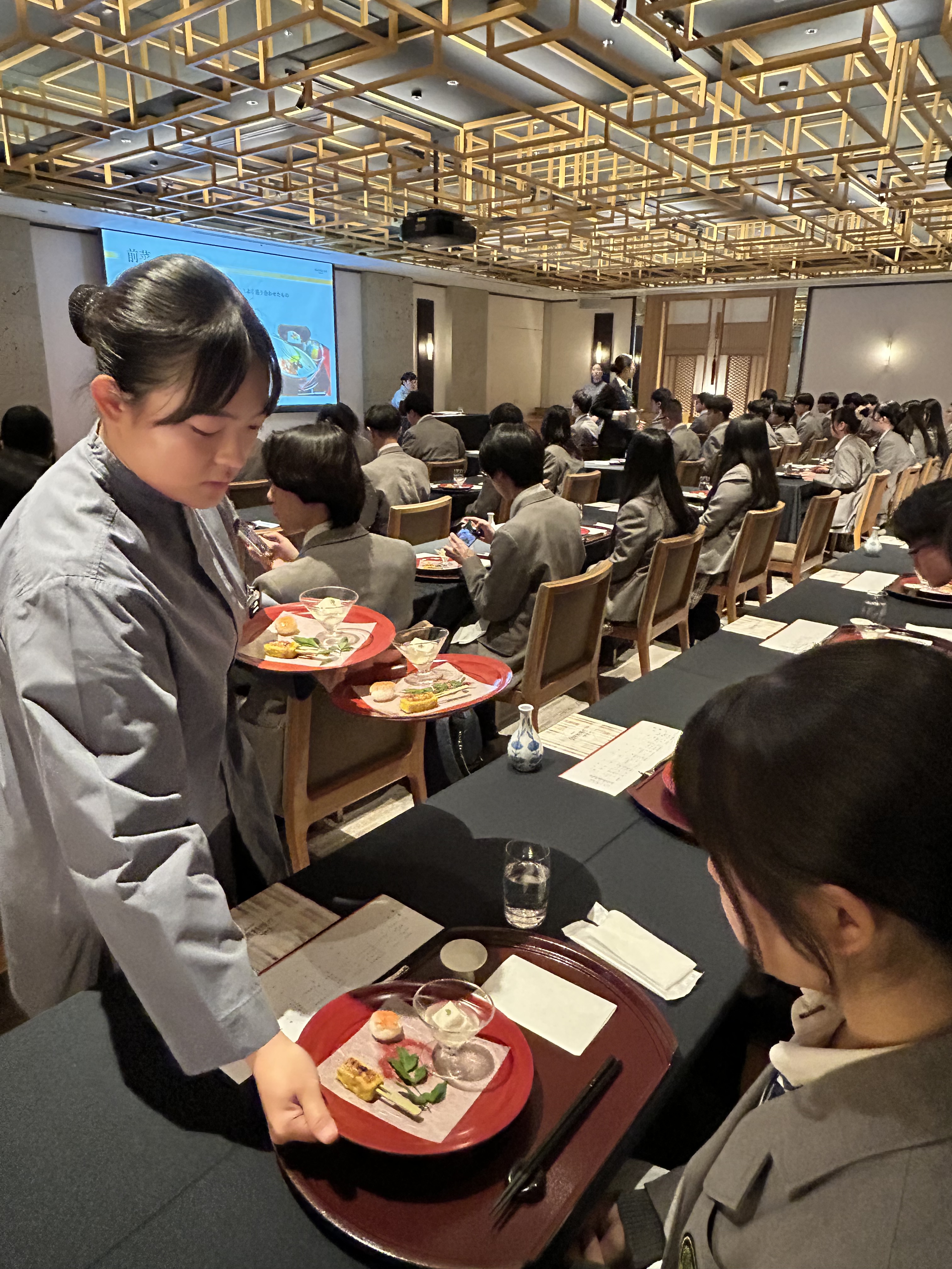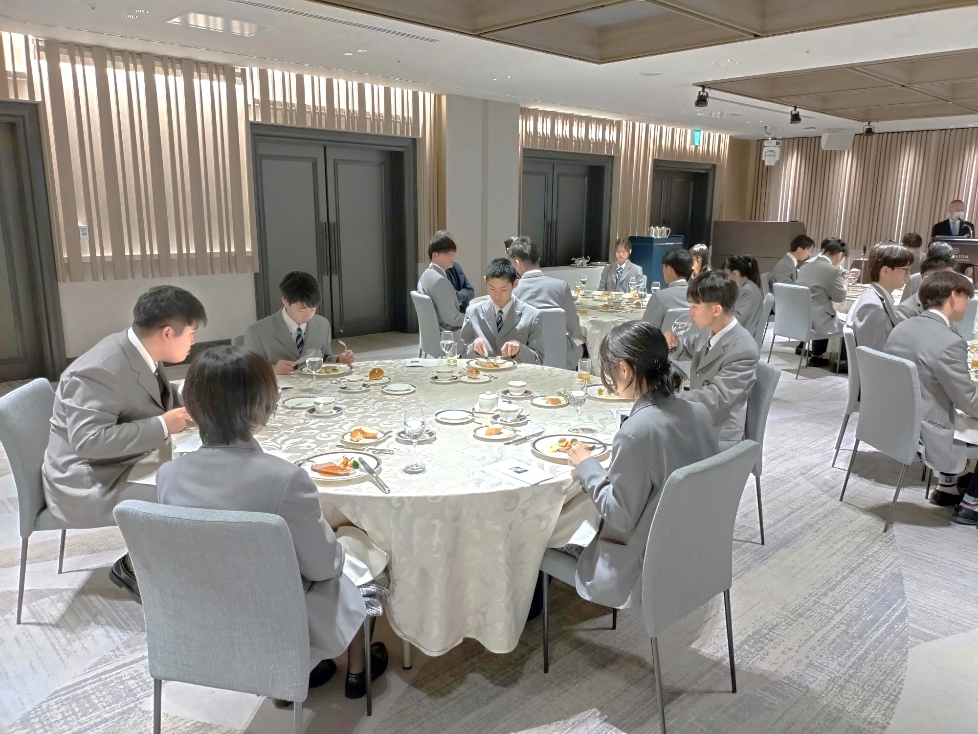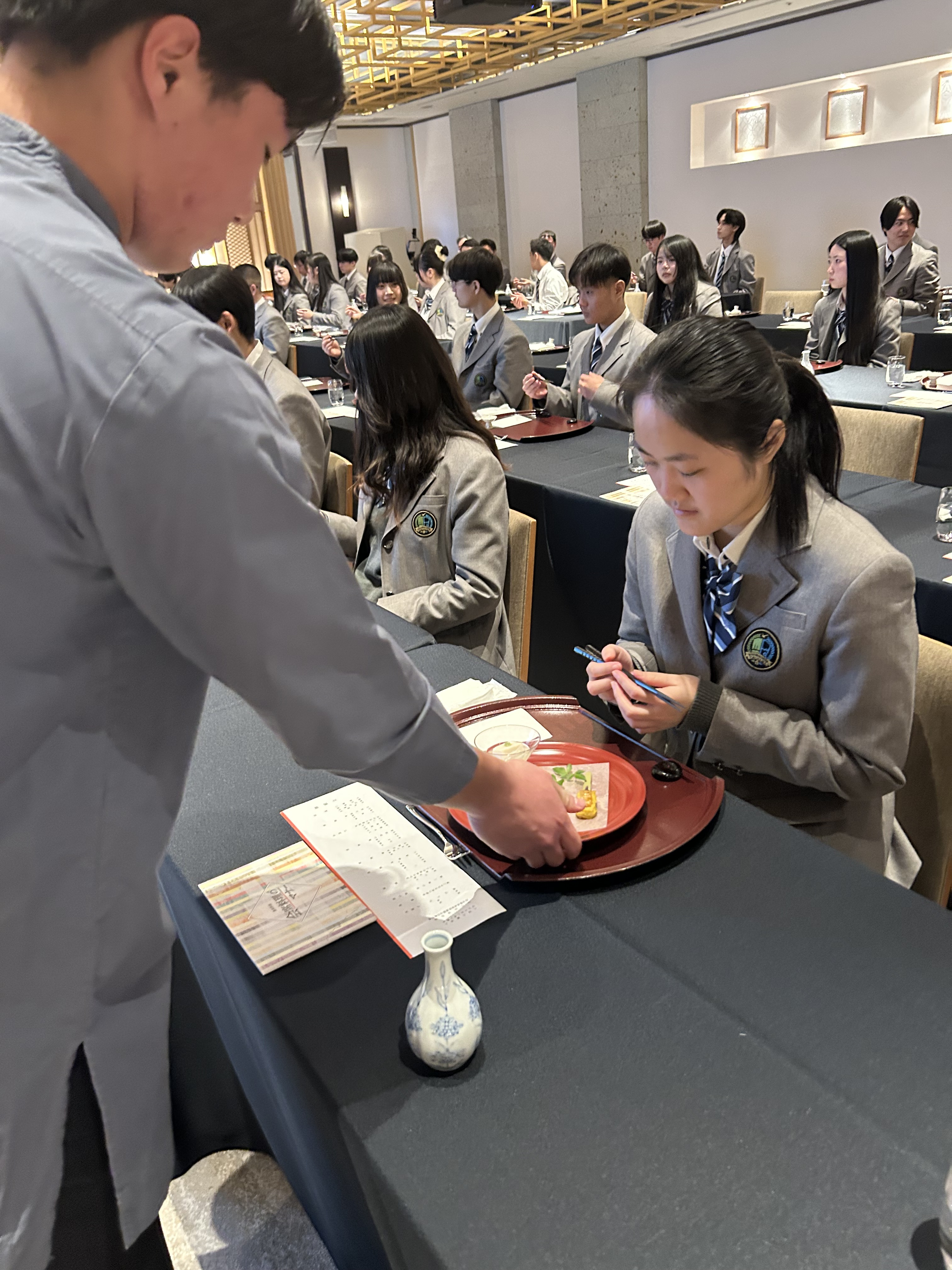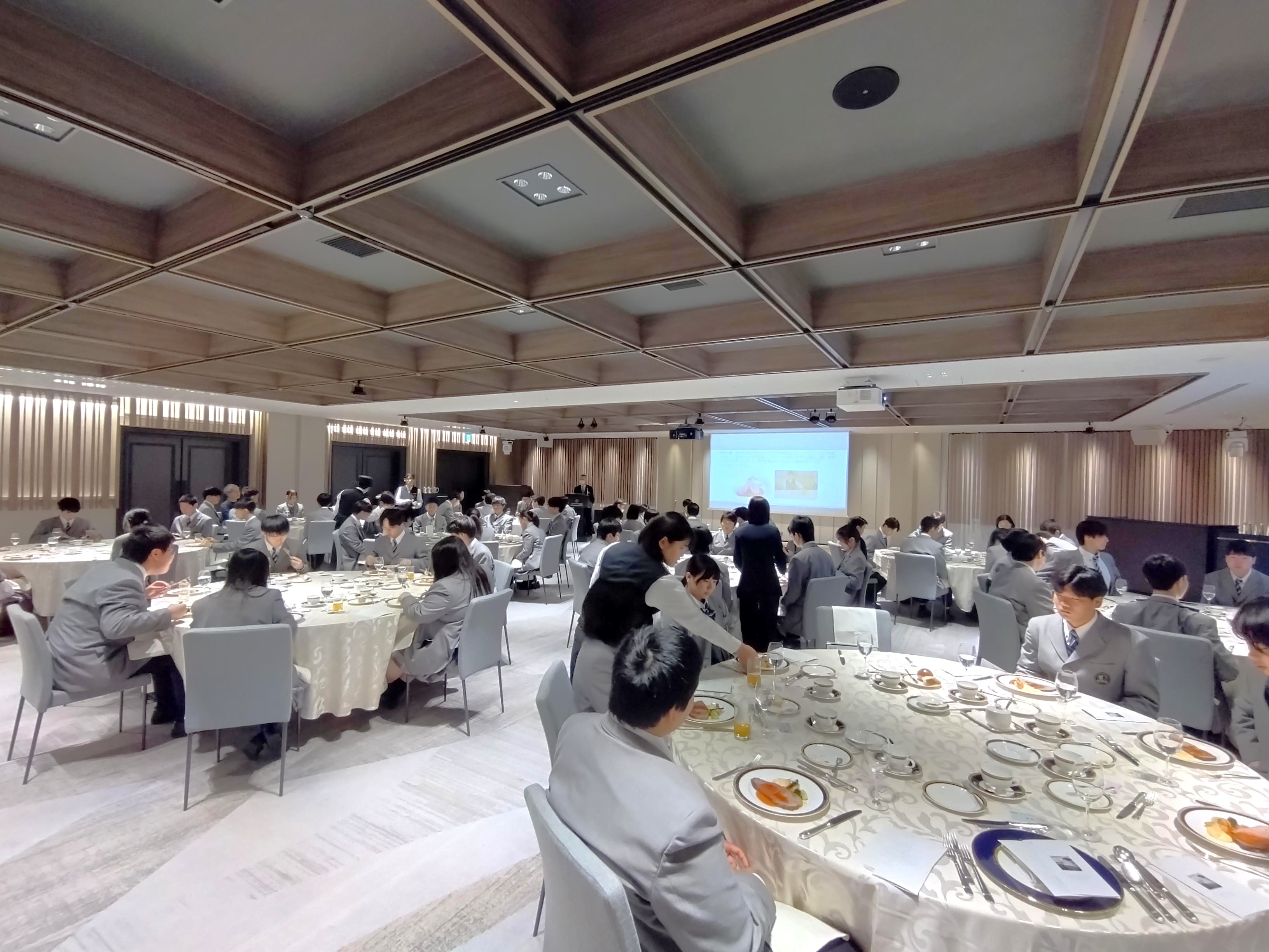 華やかで落ち着いた雰囲気の中、生徒たちは少し緊張した面持ちで研修に臨みました。