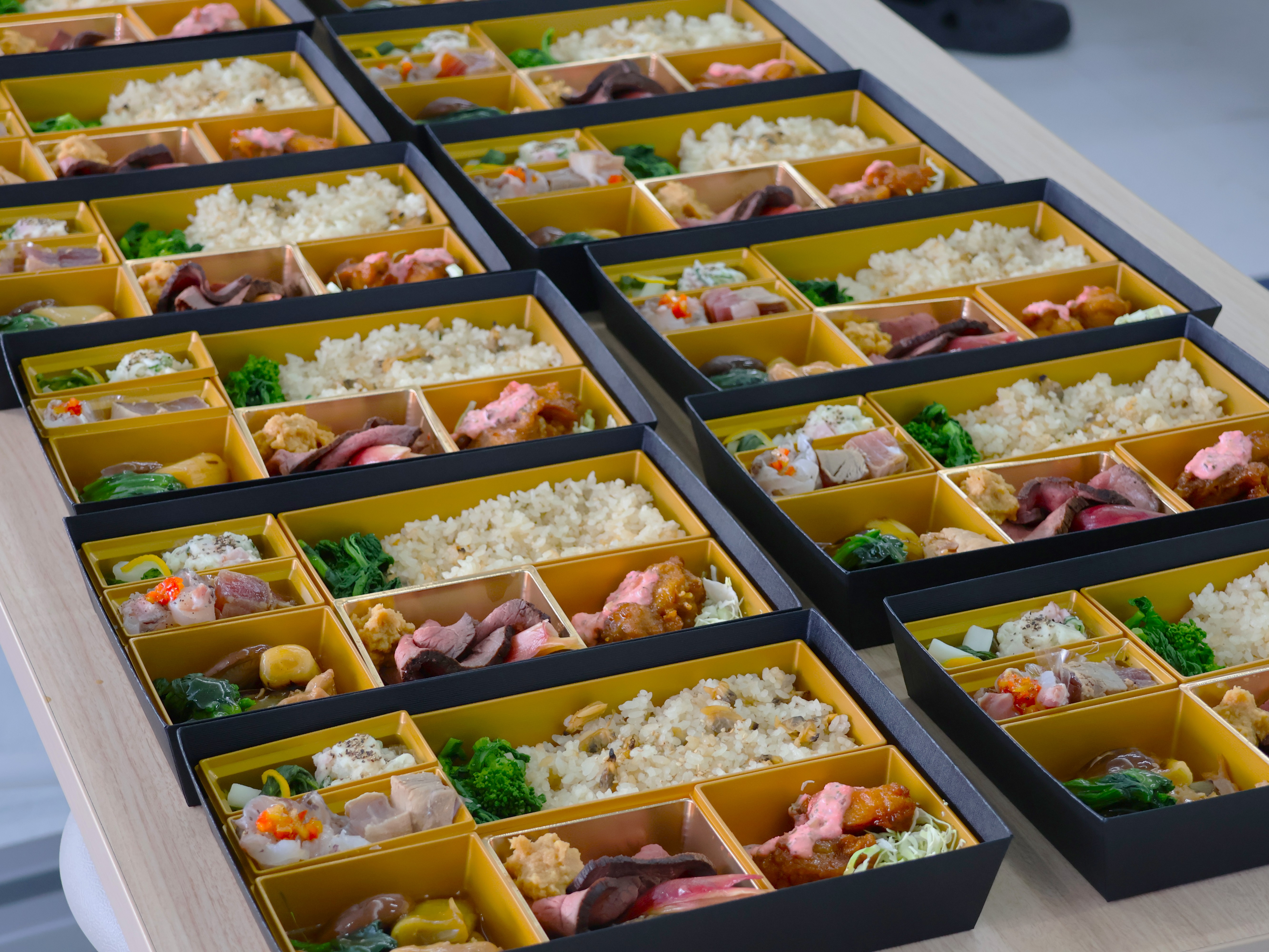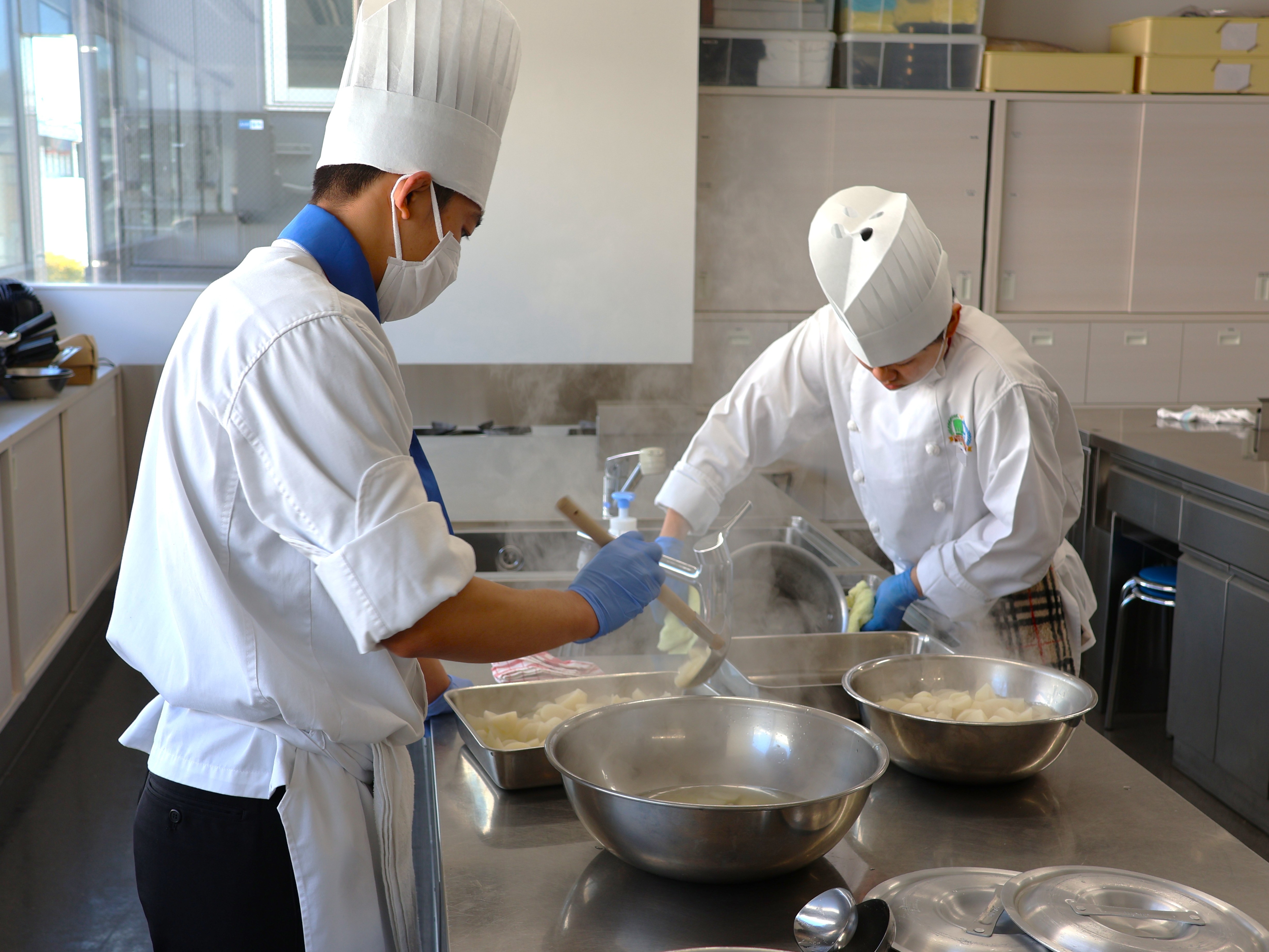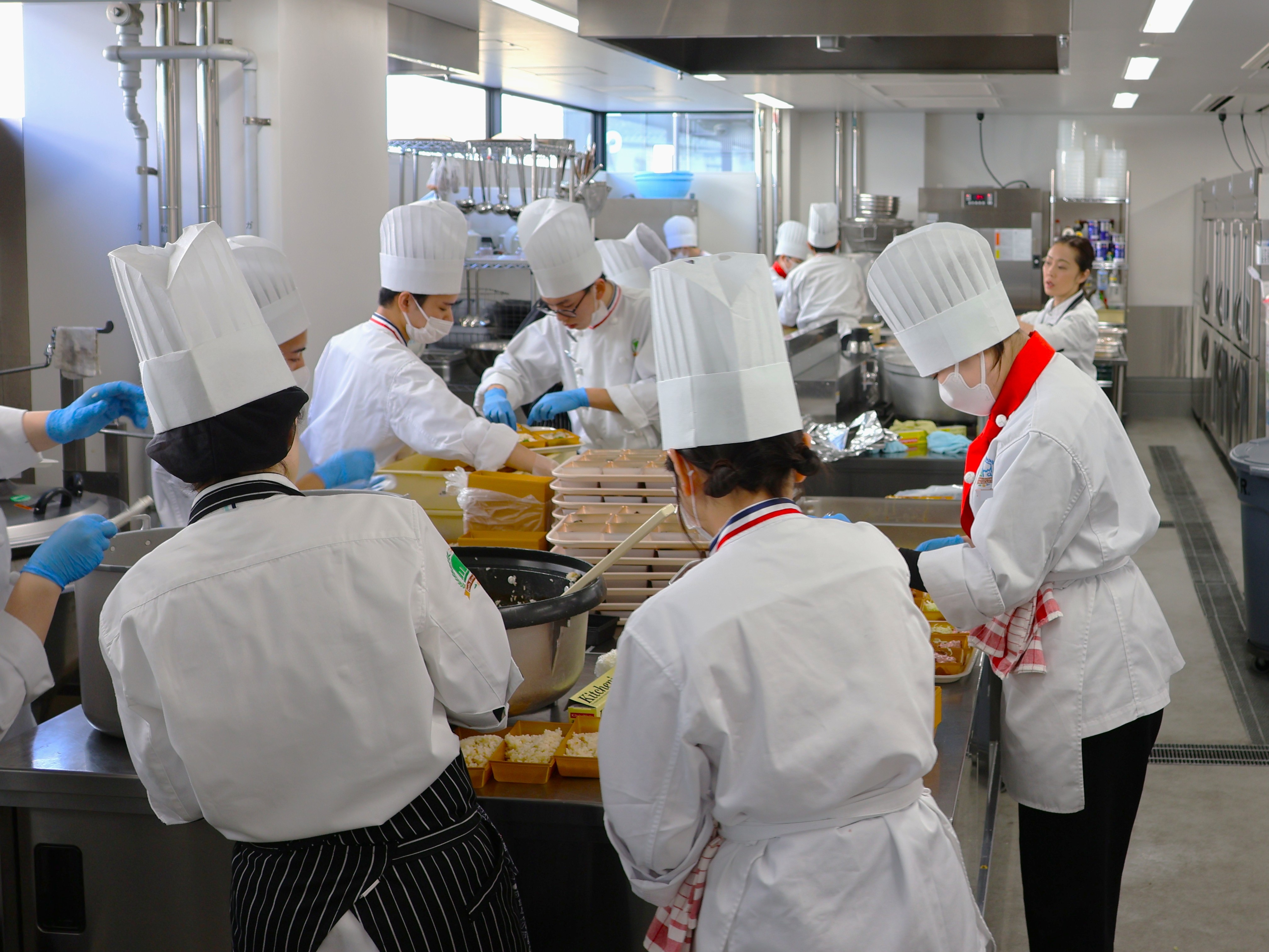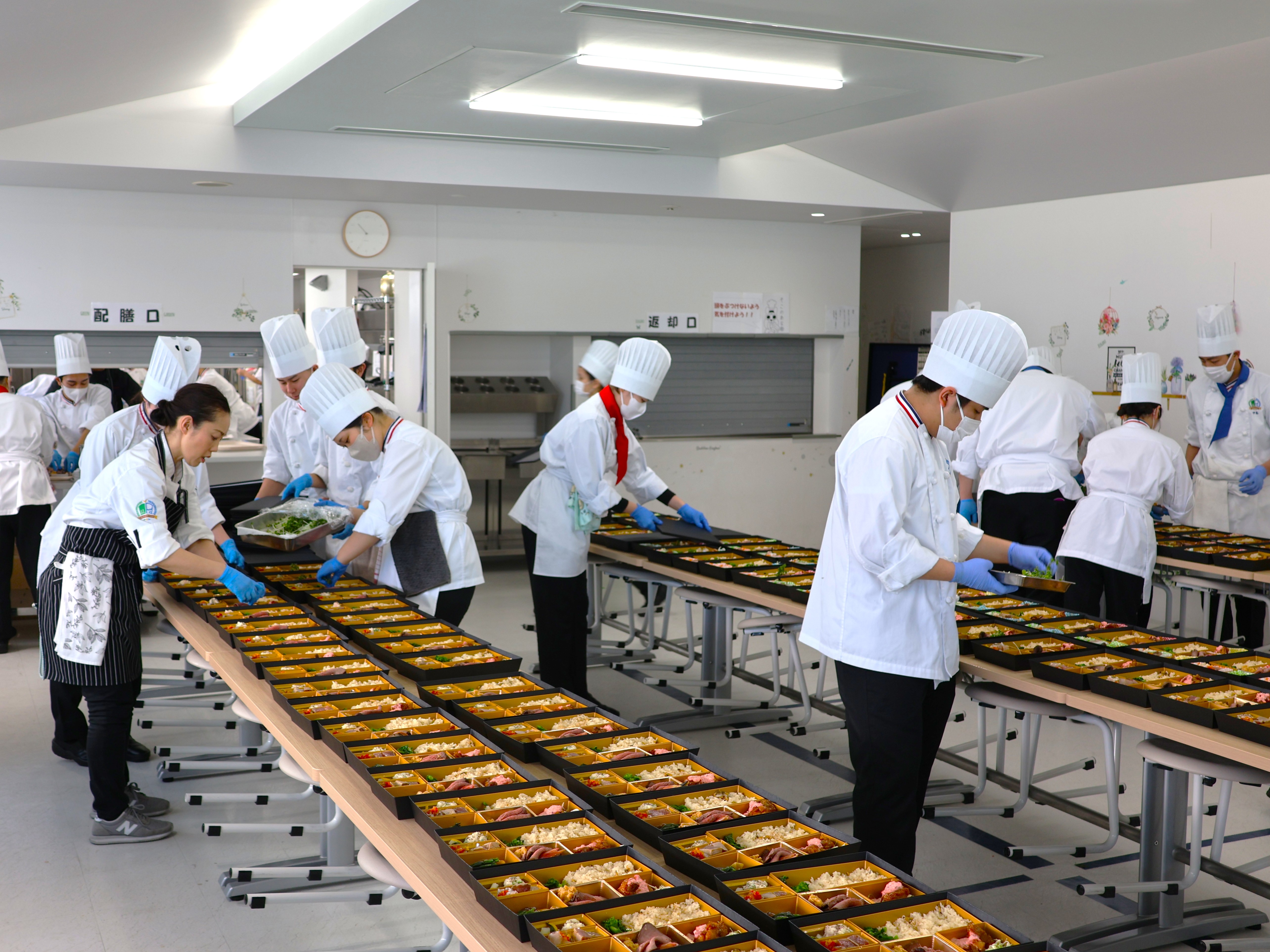 会食が始まると、生徒たちが心を込めて調理した料理を囲み、あちらこちらで笑顔があふれていました。