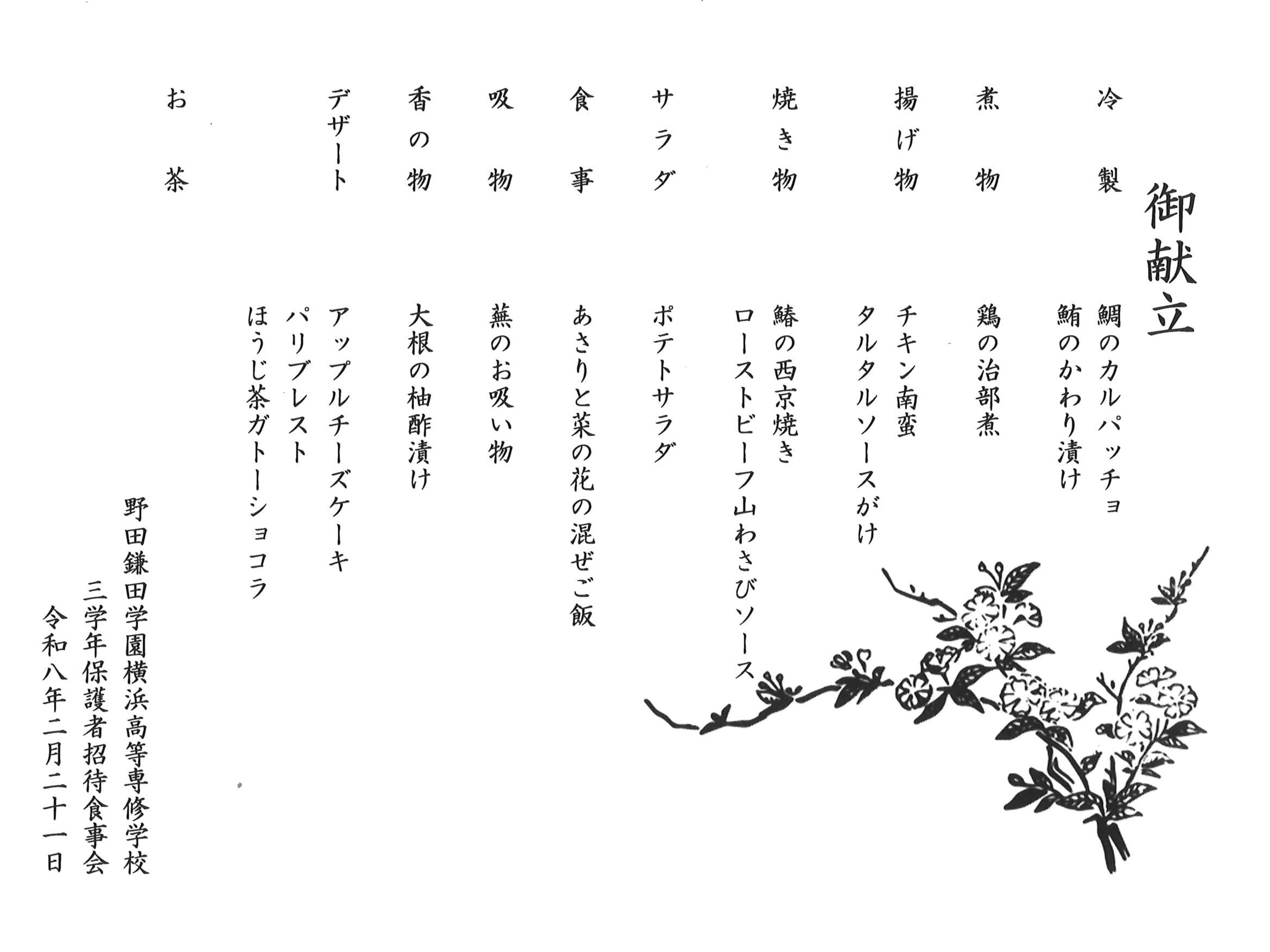 2月21日 3年生にとって、校舎内での最後の行事となる「保護者招待食事会」を開催しました。