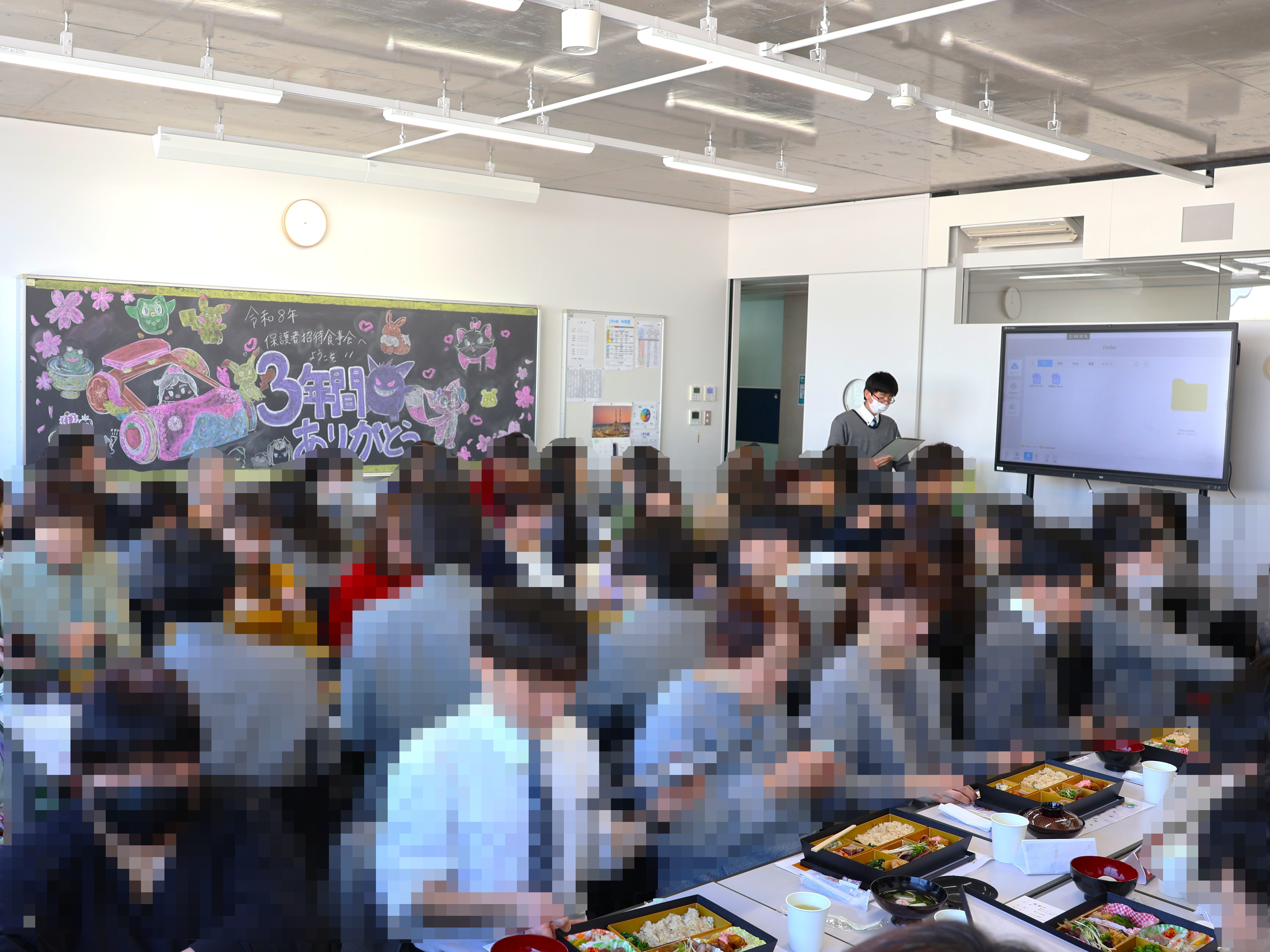 食後には、情報メディア科が制作した行事ムービーを鑑賞し、仲間と過ごした日々を懐かしく振り返りました。