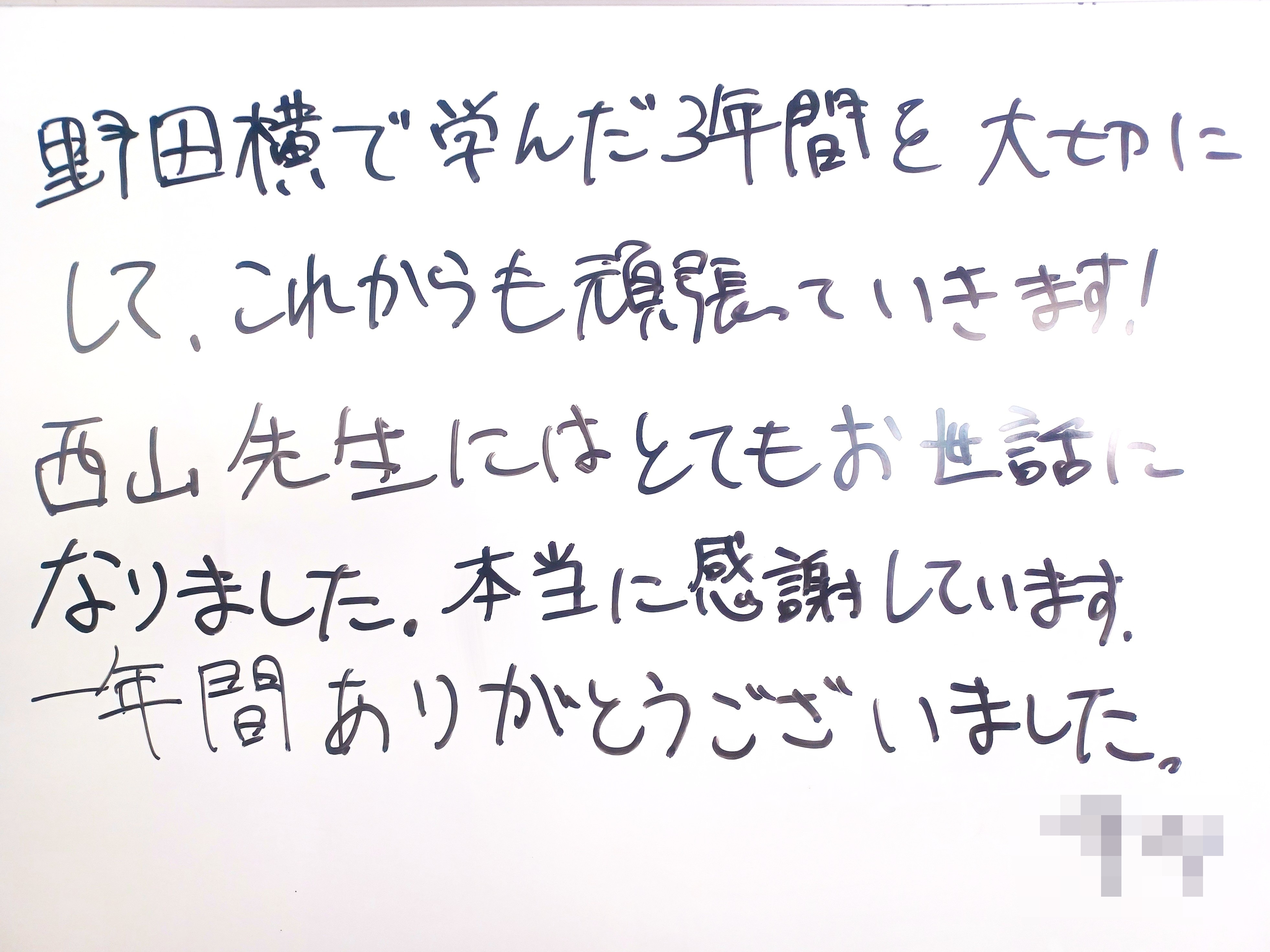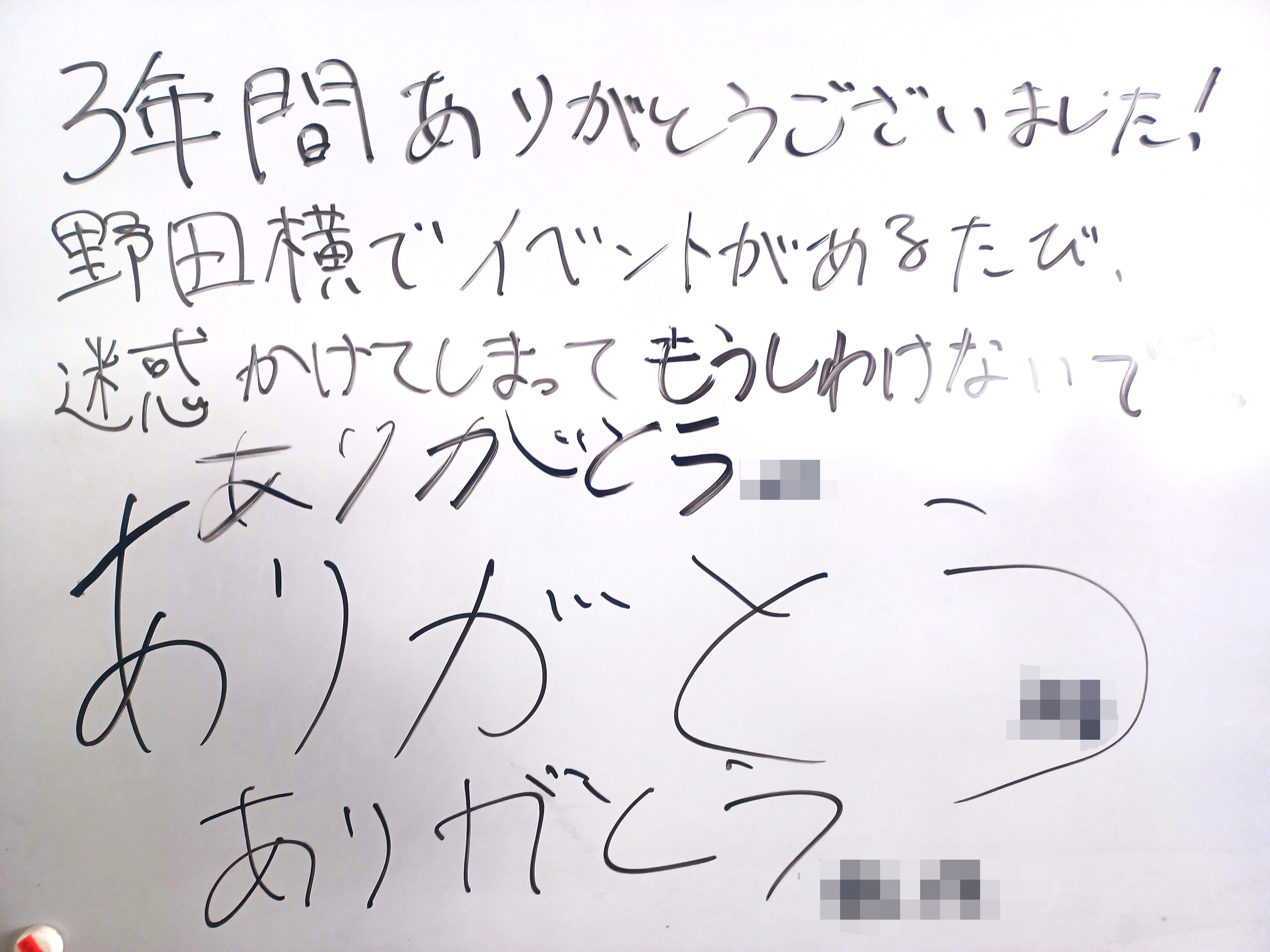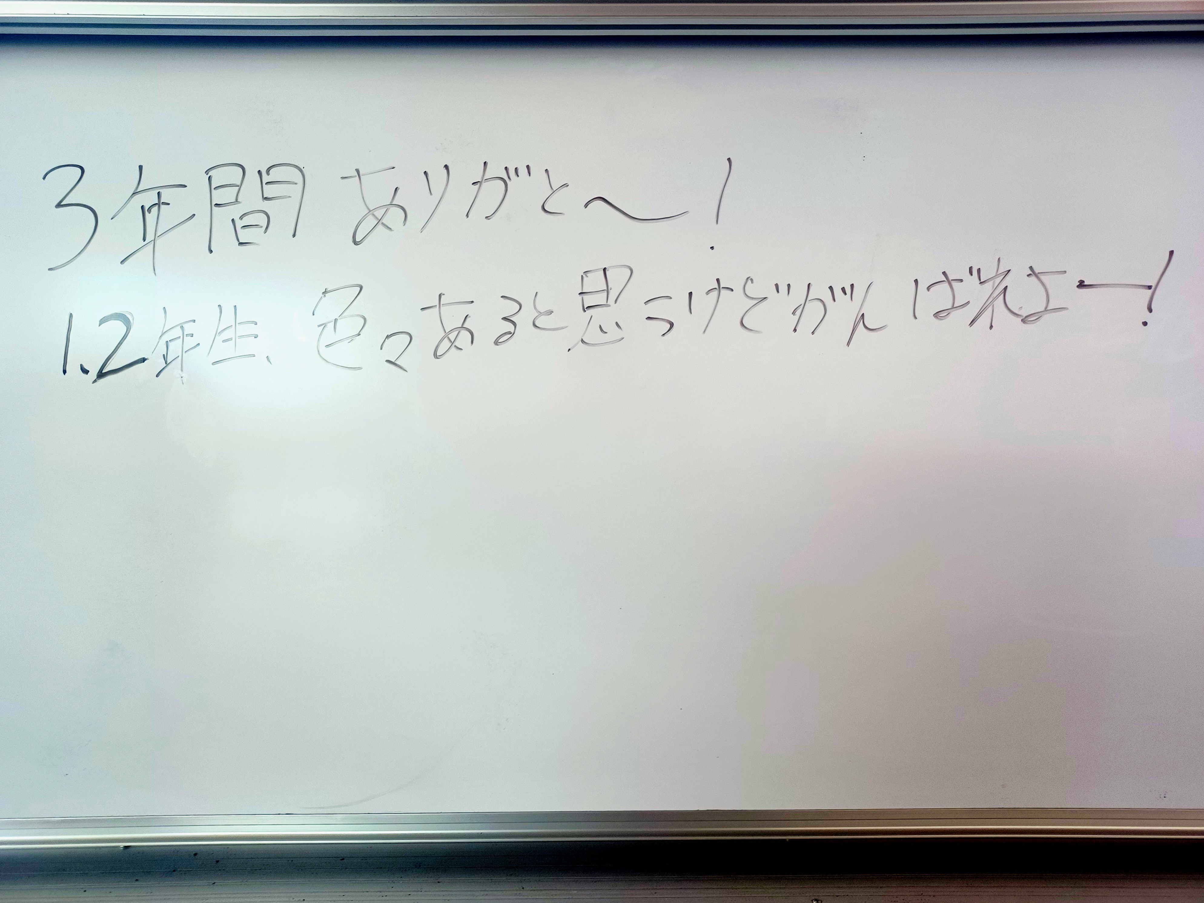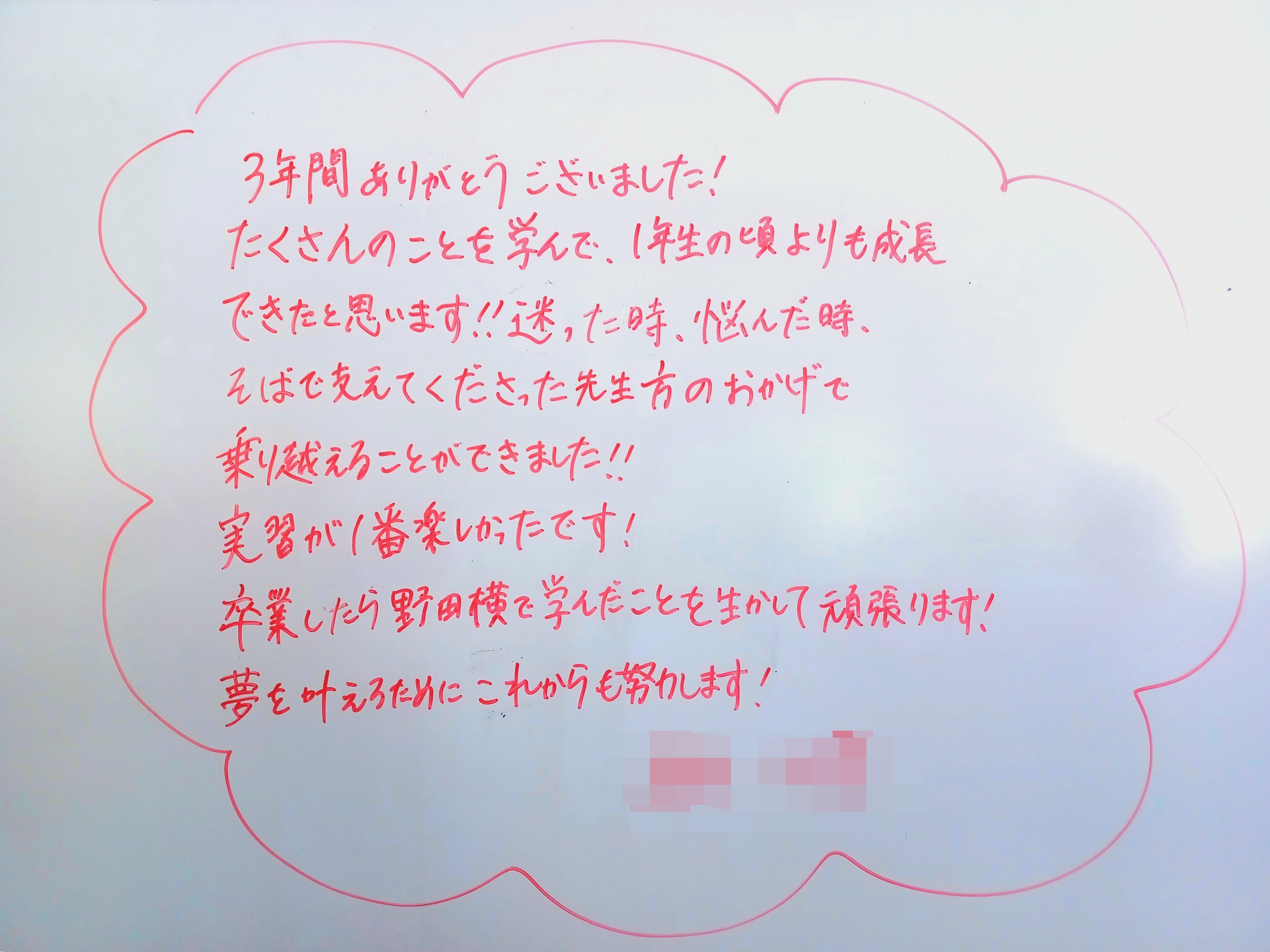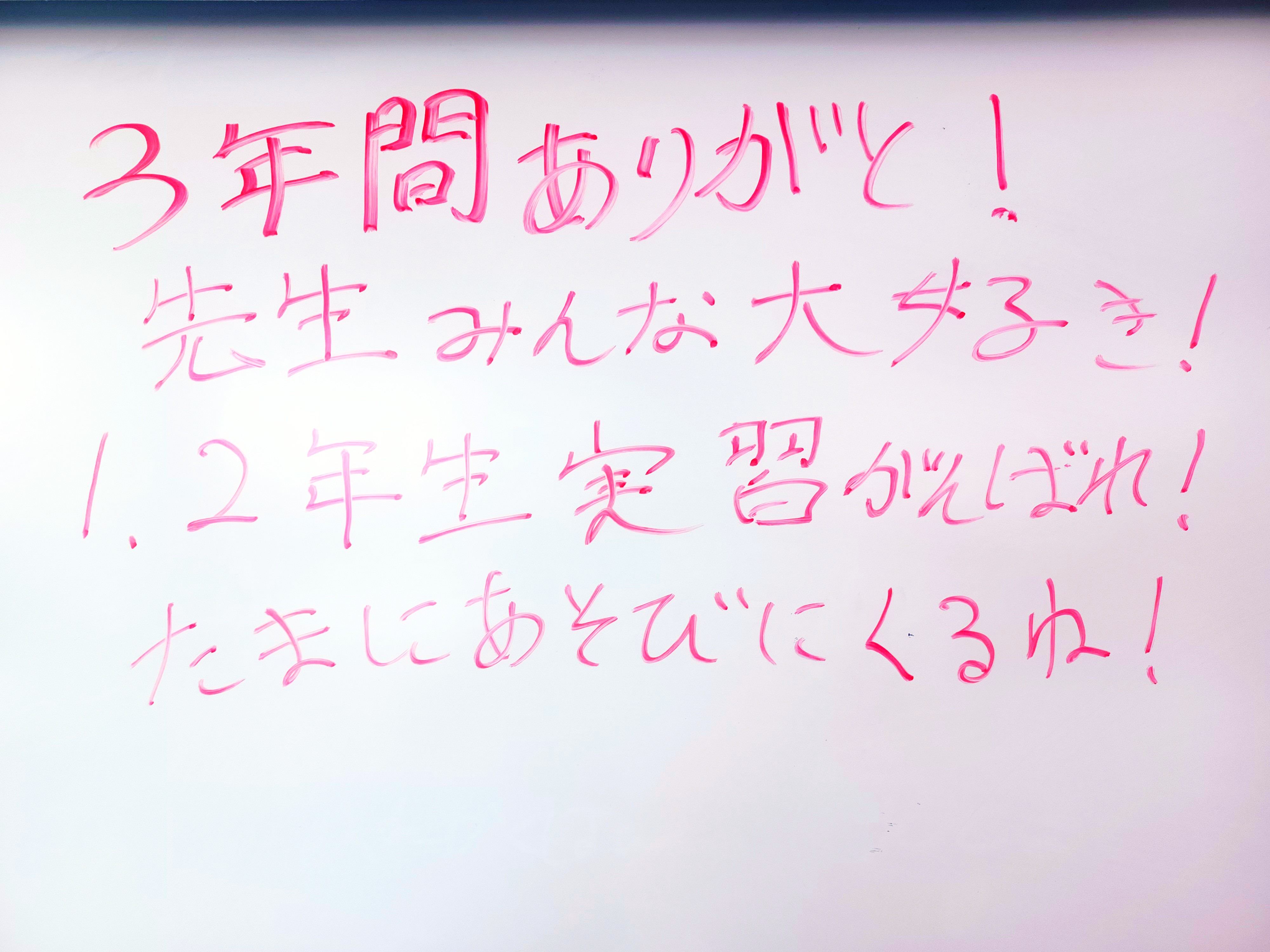 片付けの終わった実習室には、後輩や先生方に向けたメッセージが残されていました。