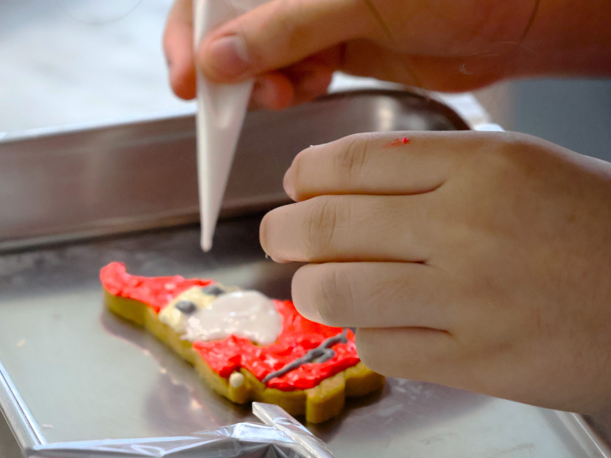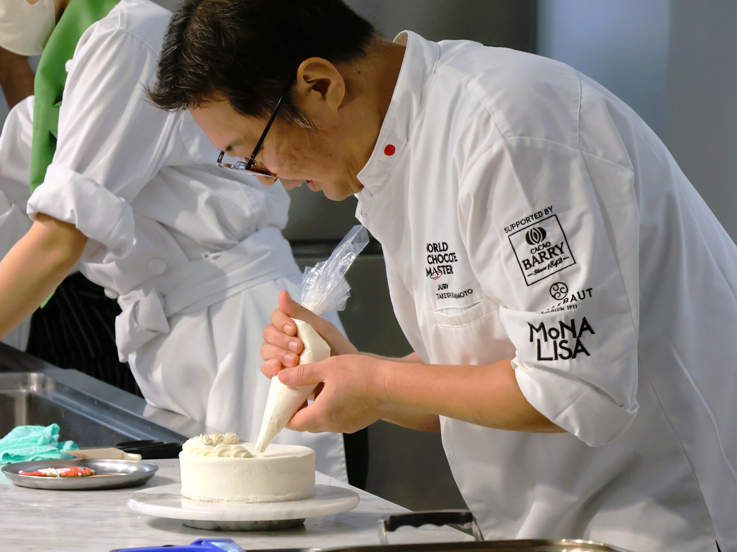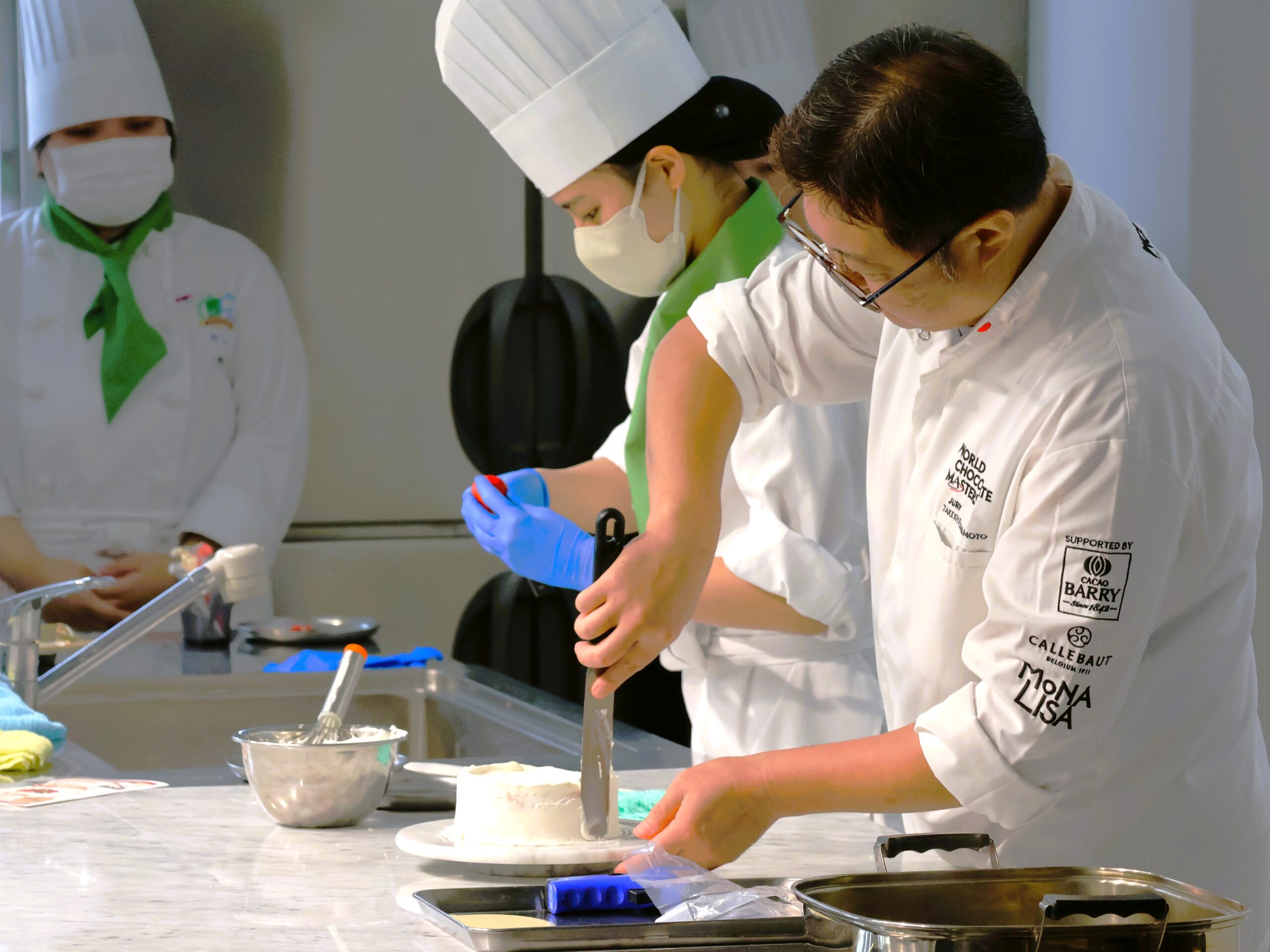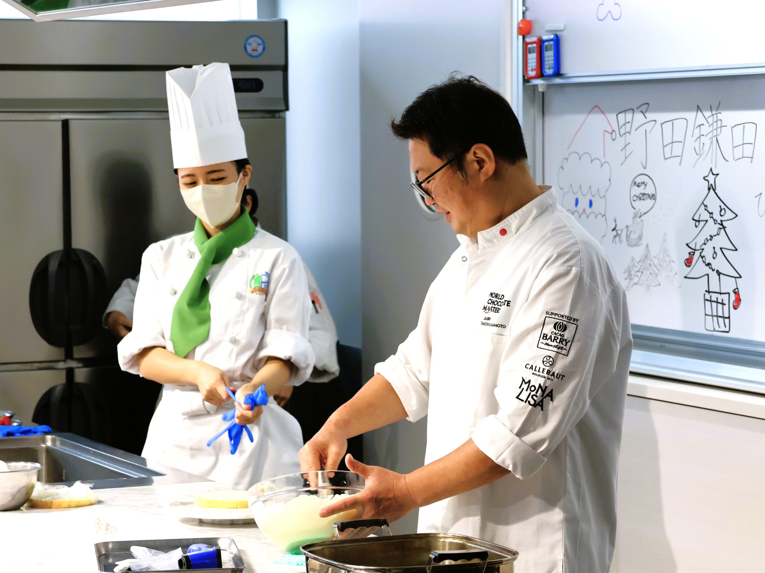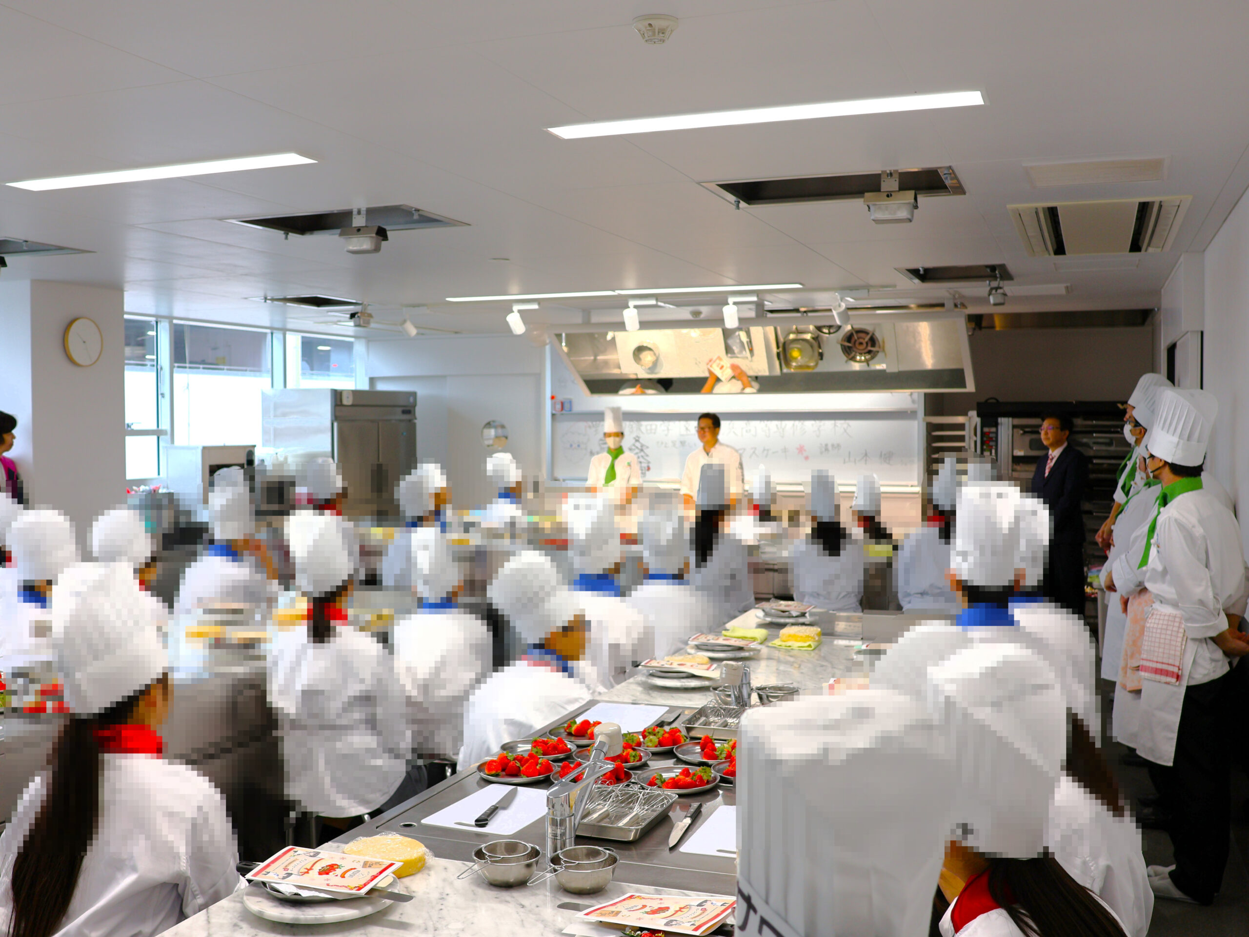 「クリームの泡立て」「デコレーション」など、皆さん真剣な表情で取り組んでいます。
