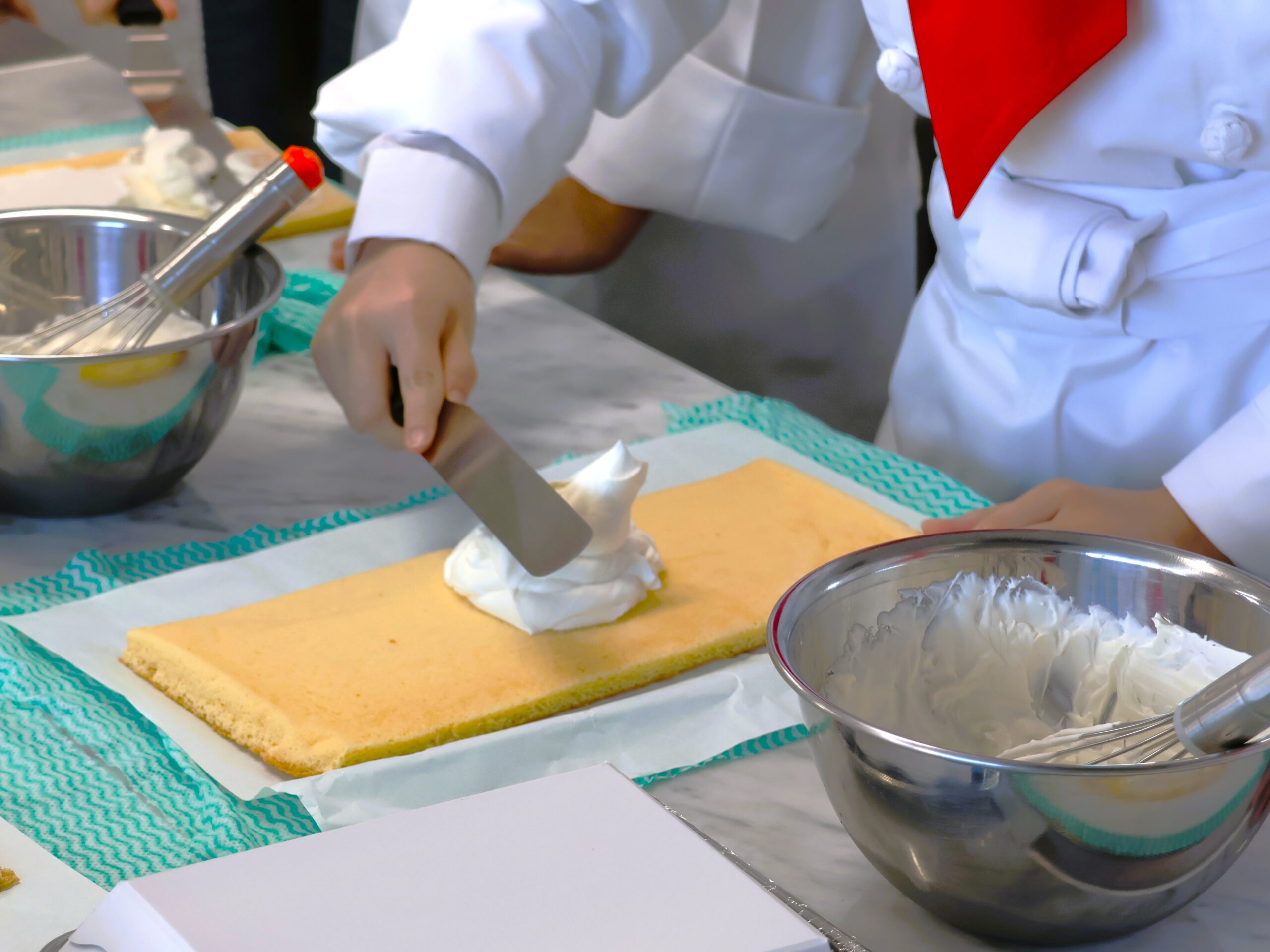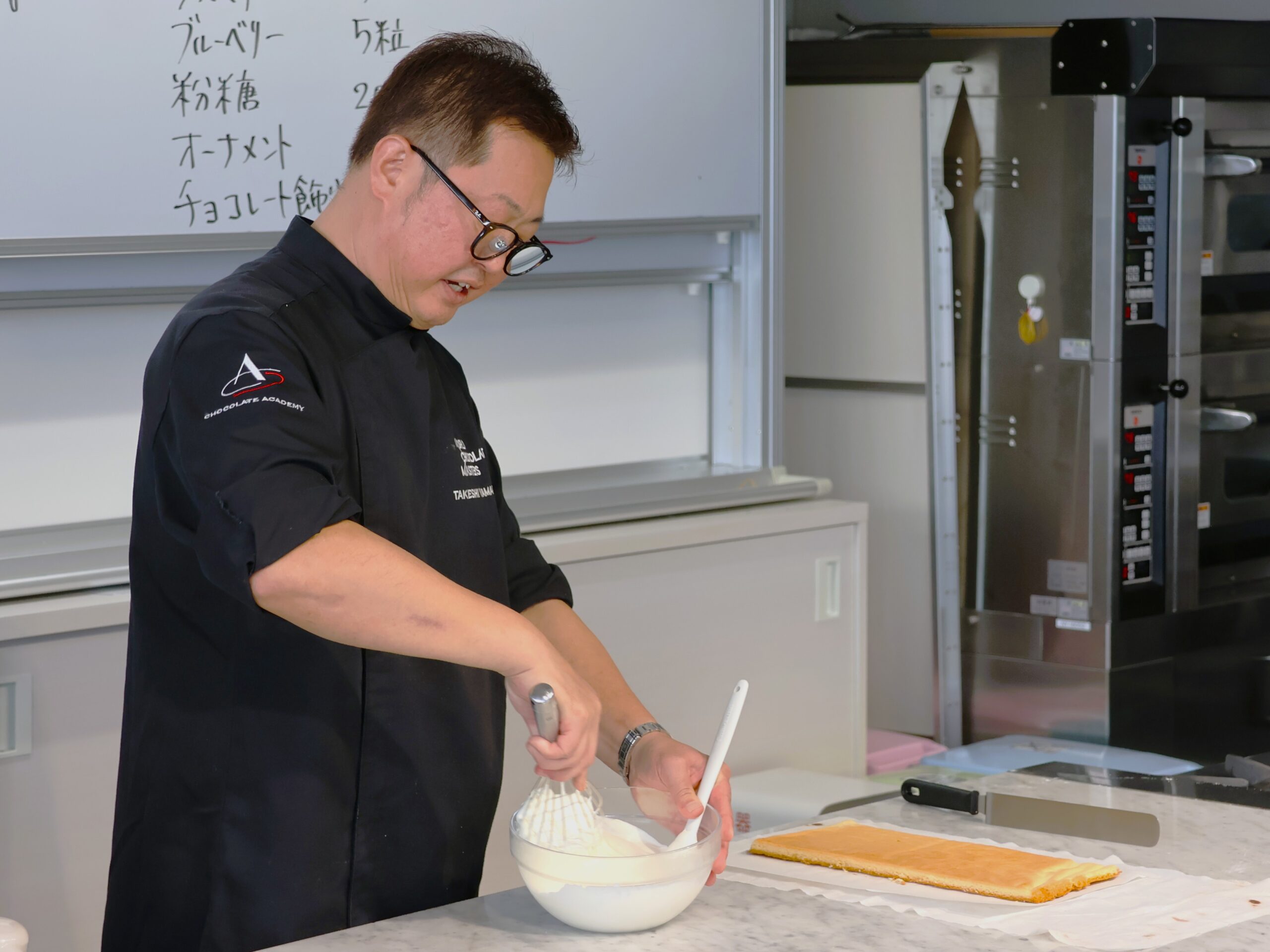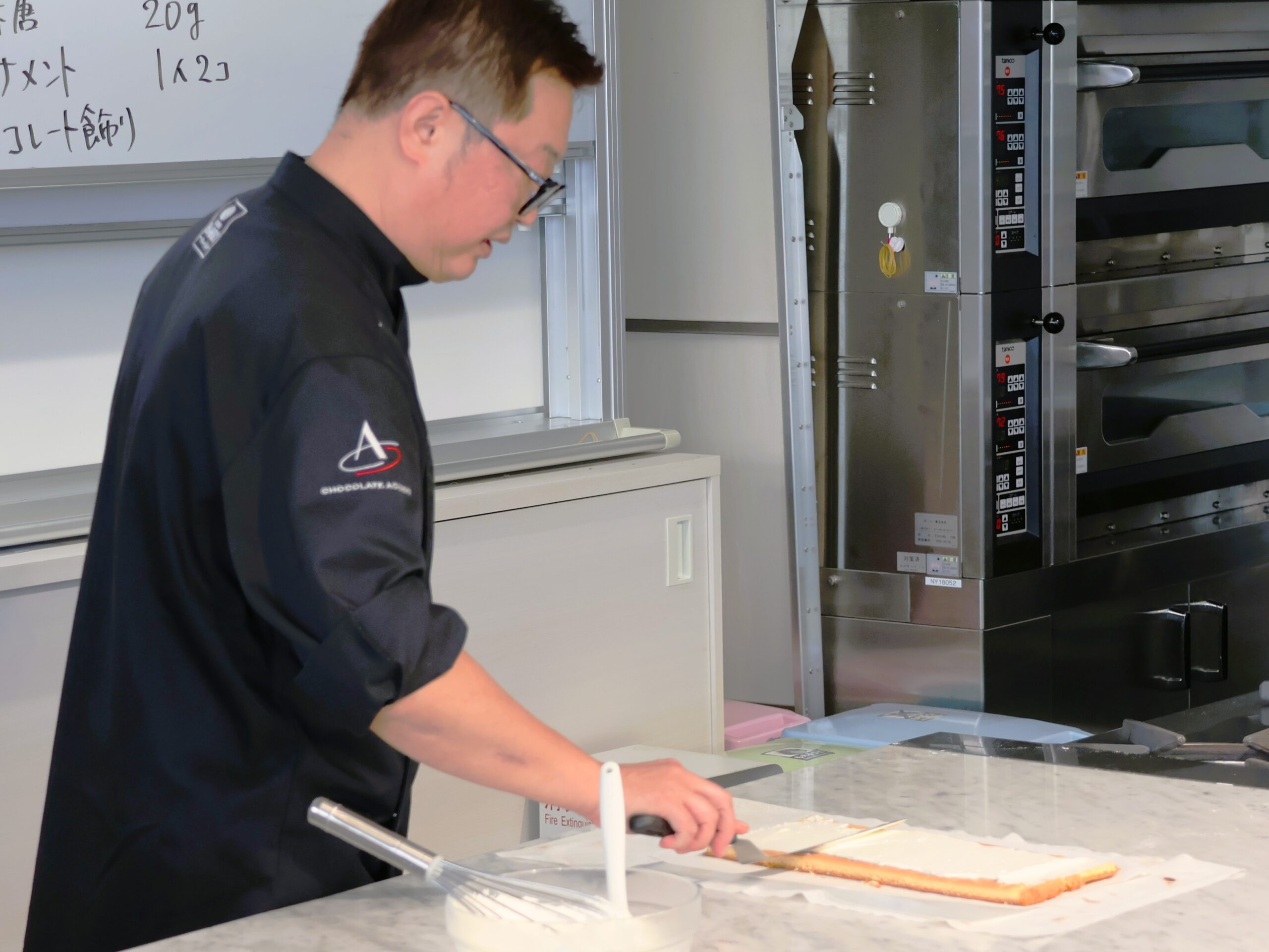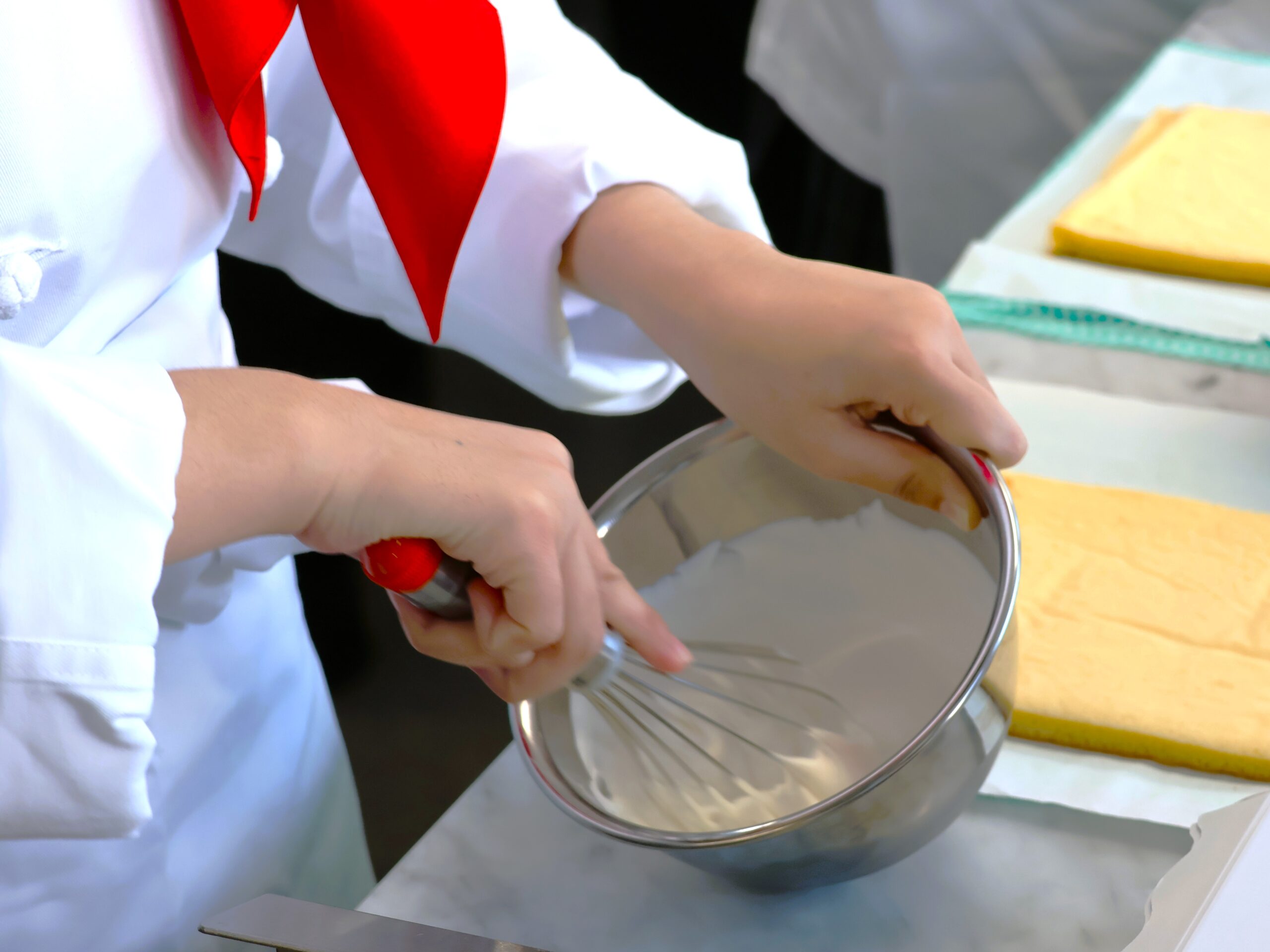 「クリームの泡立て」や「デコレーション」など、皆さん真剣な表情で取り組んでいました。