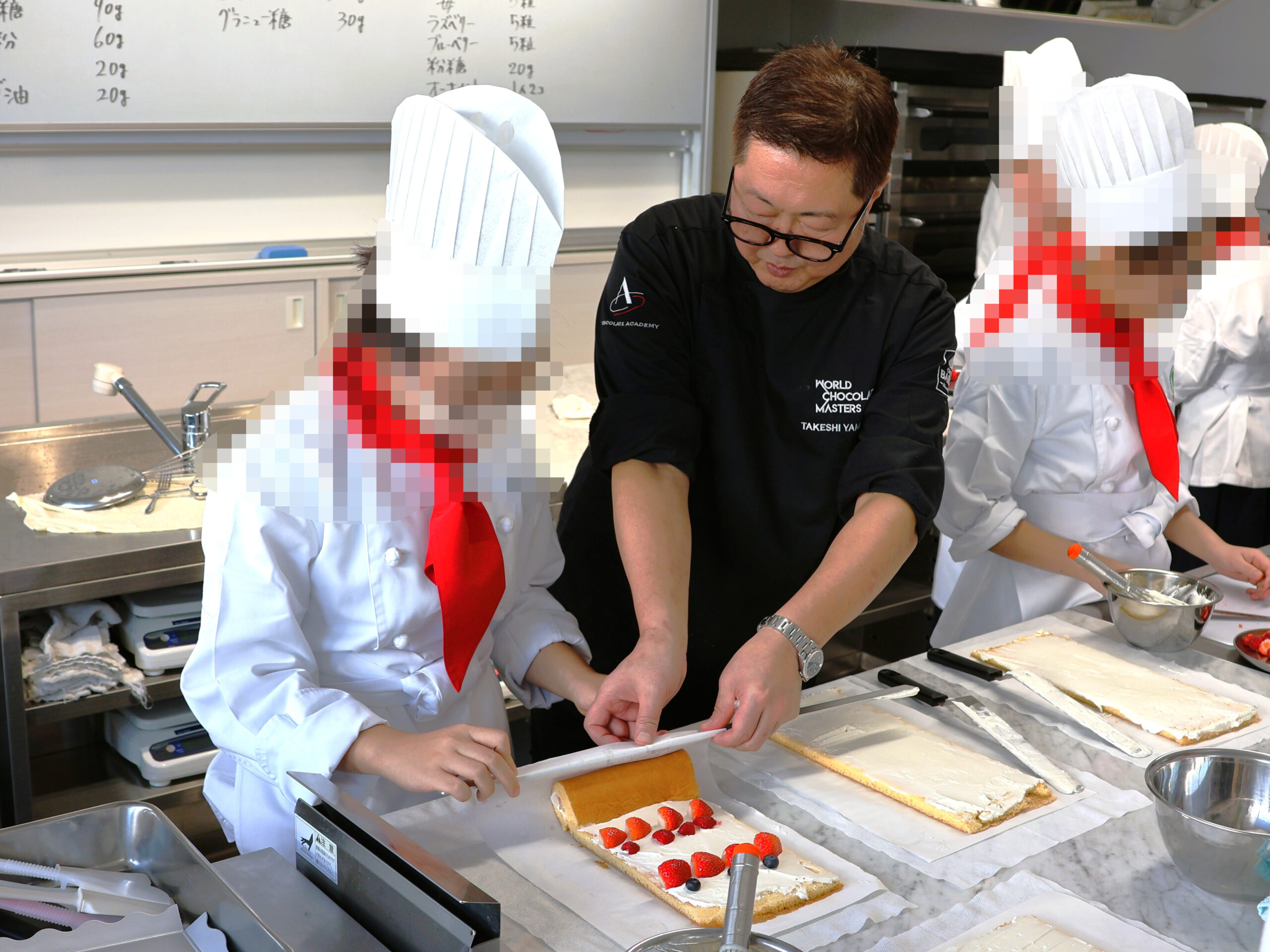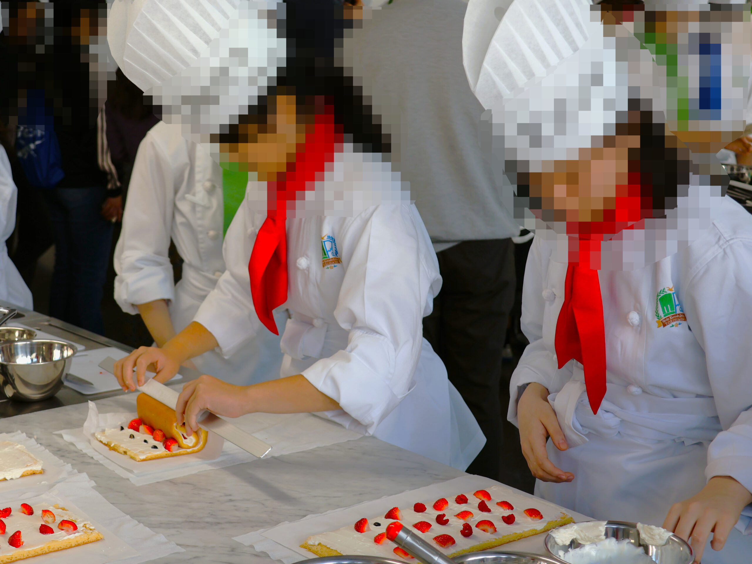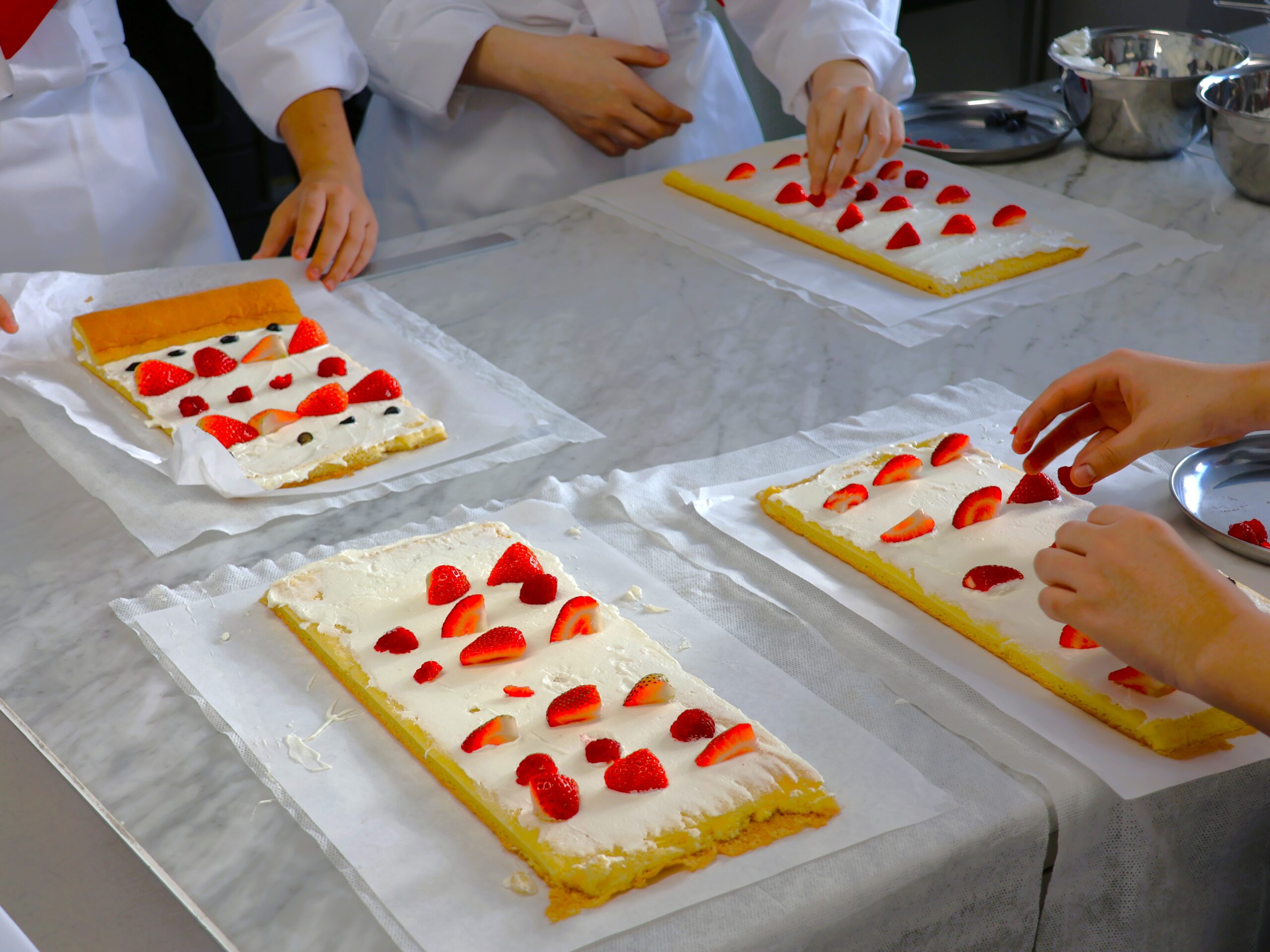 「クリームの泡立て」や「デコレーション」など、皆さん真剣な表情で取り組んでいました。