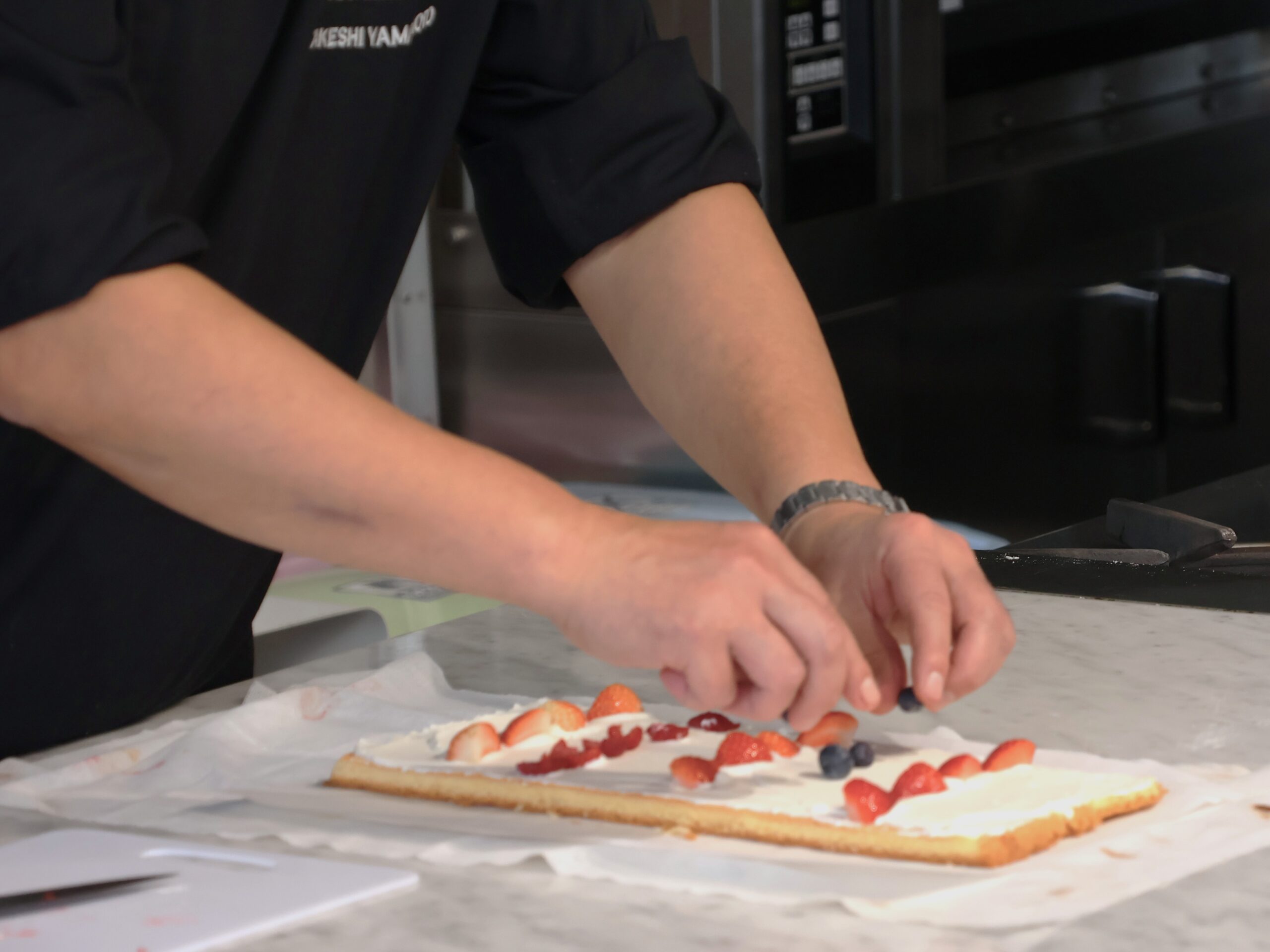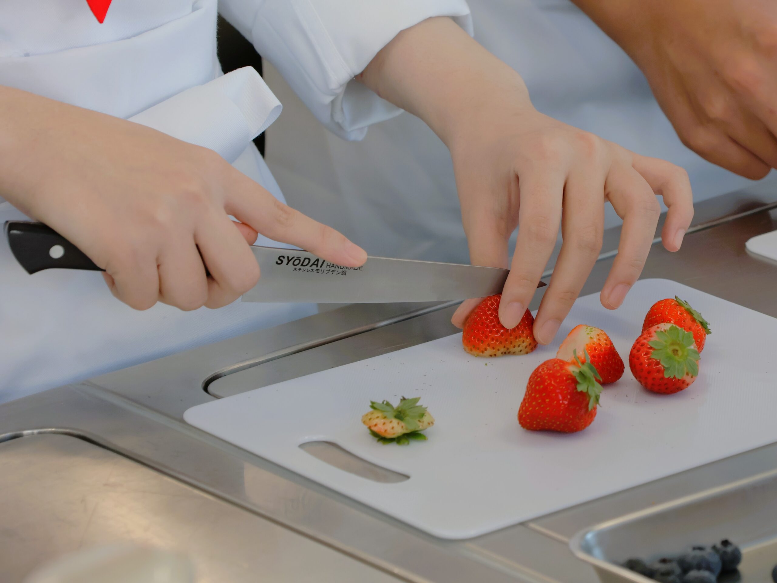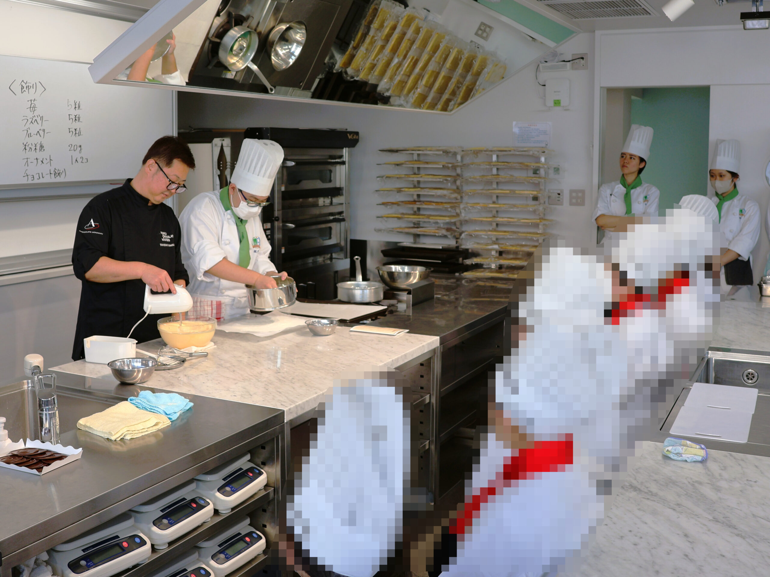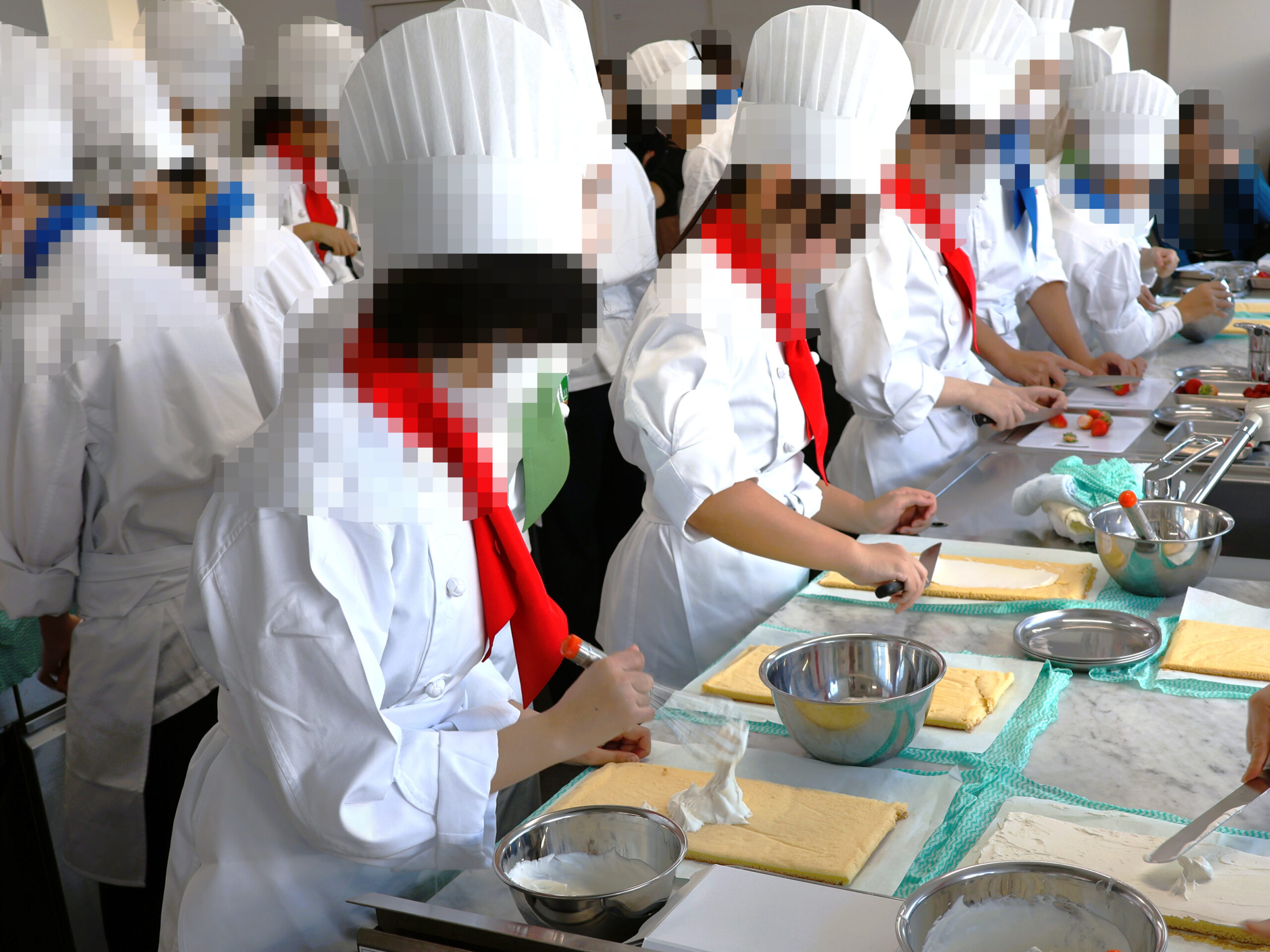 「クリームの泡立て」や「デコレーション」など、皆さん真剣な表情で取り組んでいました。