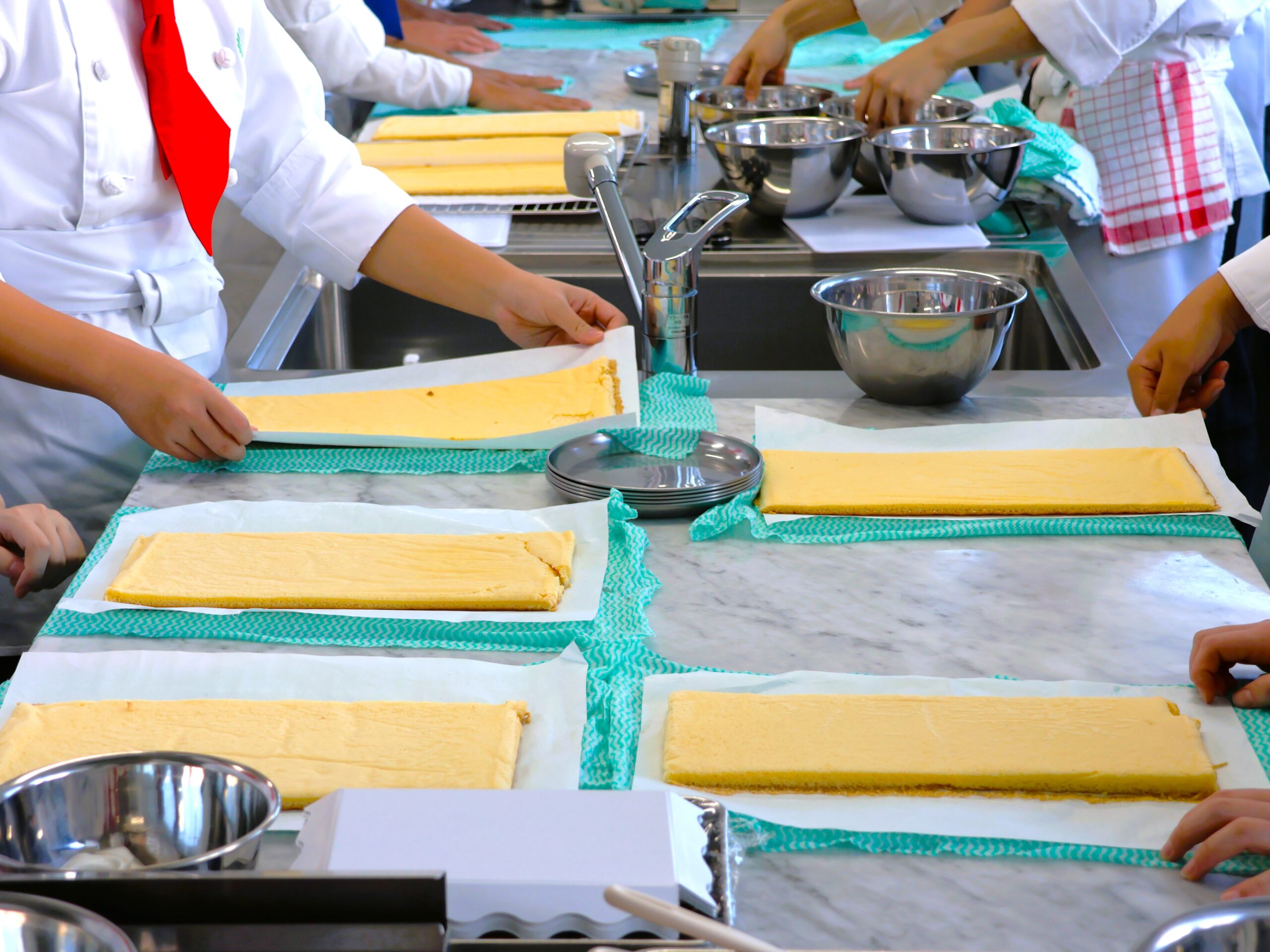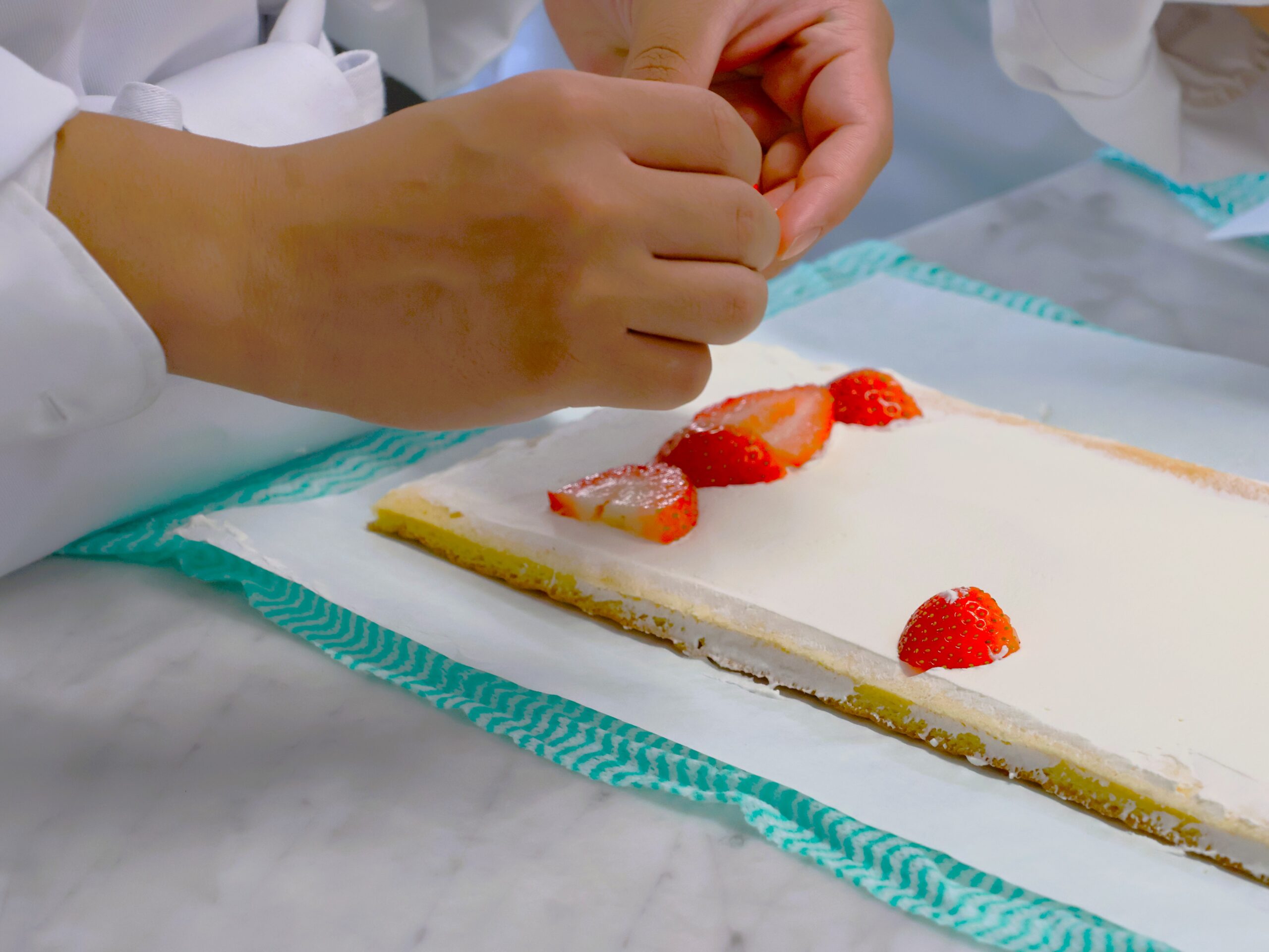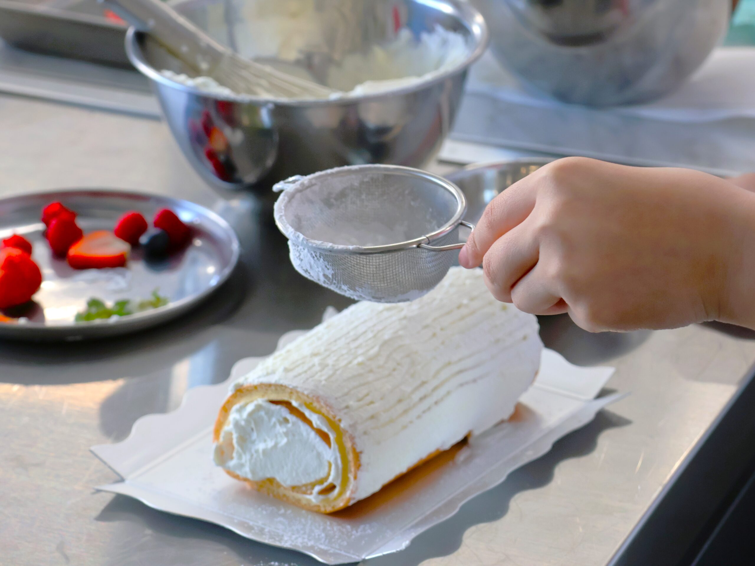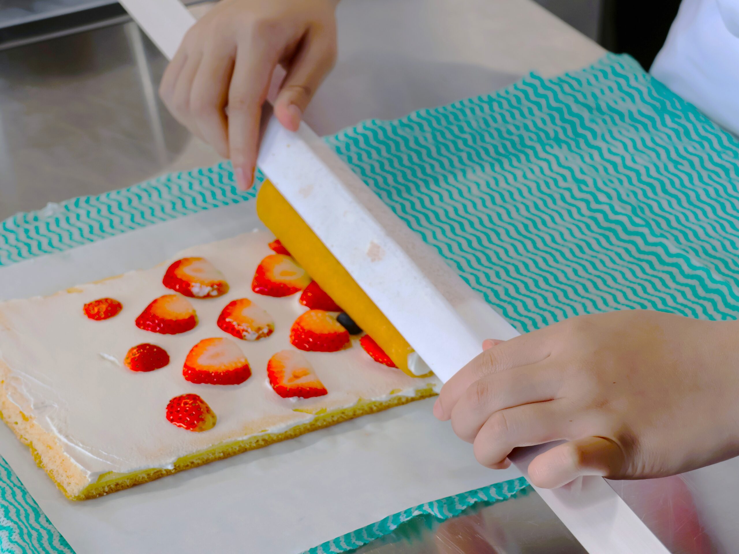 笑顔あふれる実習室では、次々とかわいいロールケーキが完成🎂