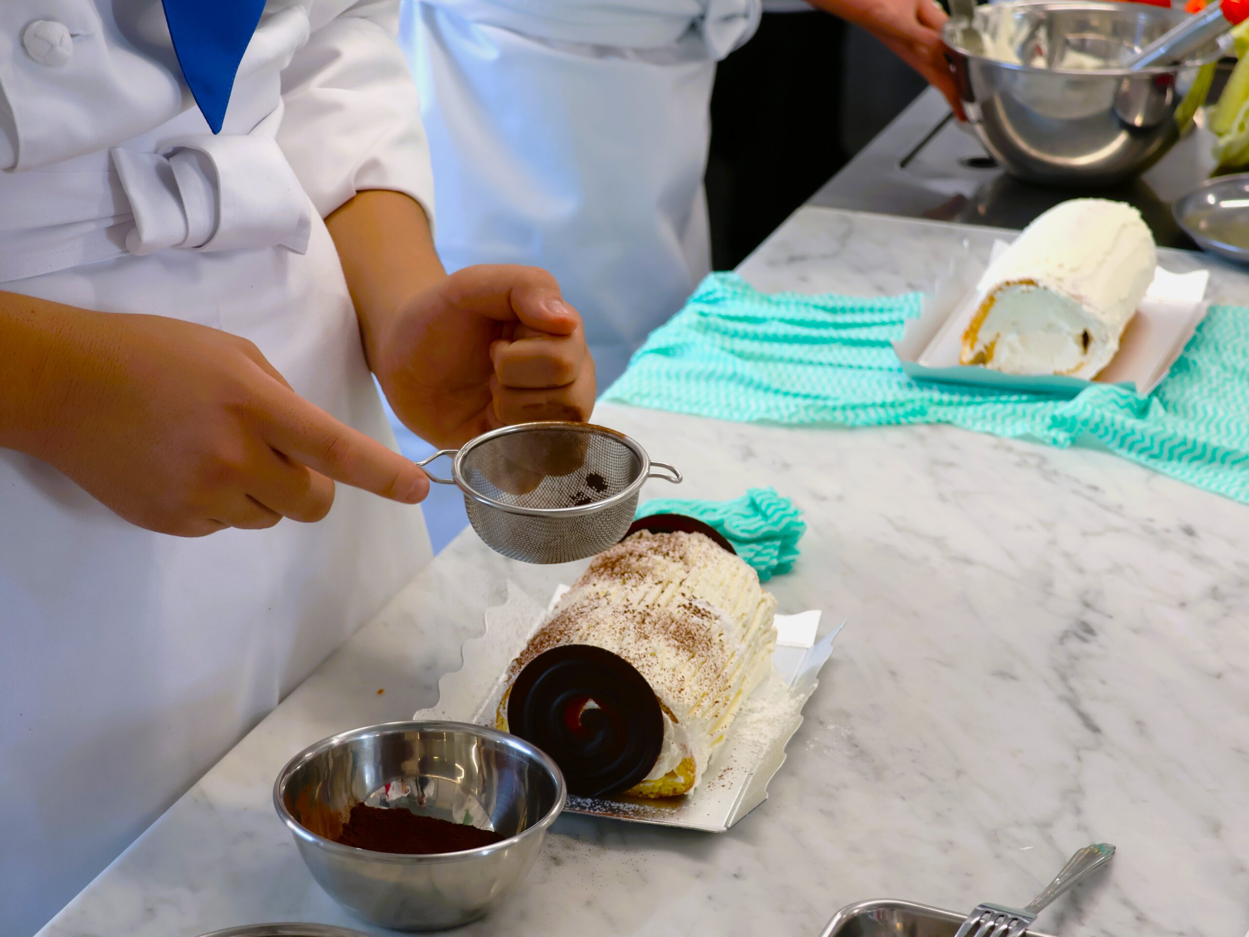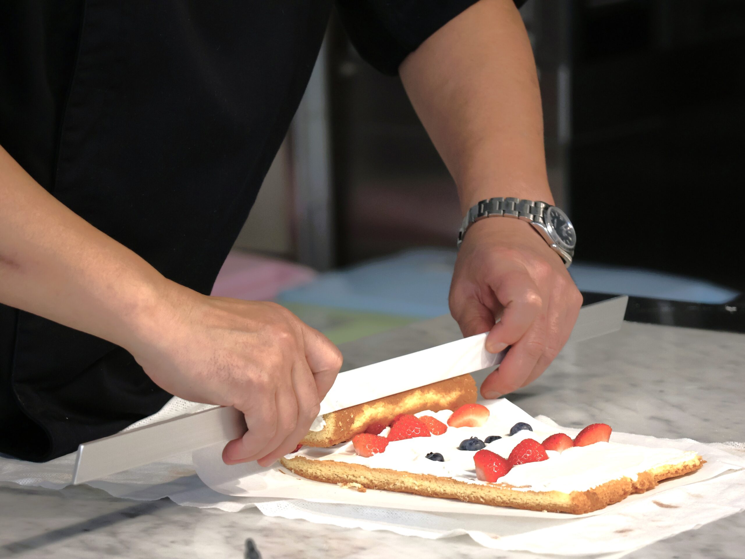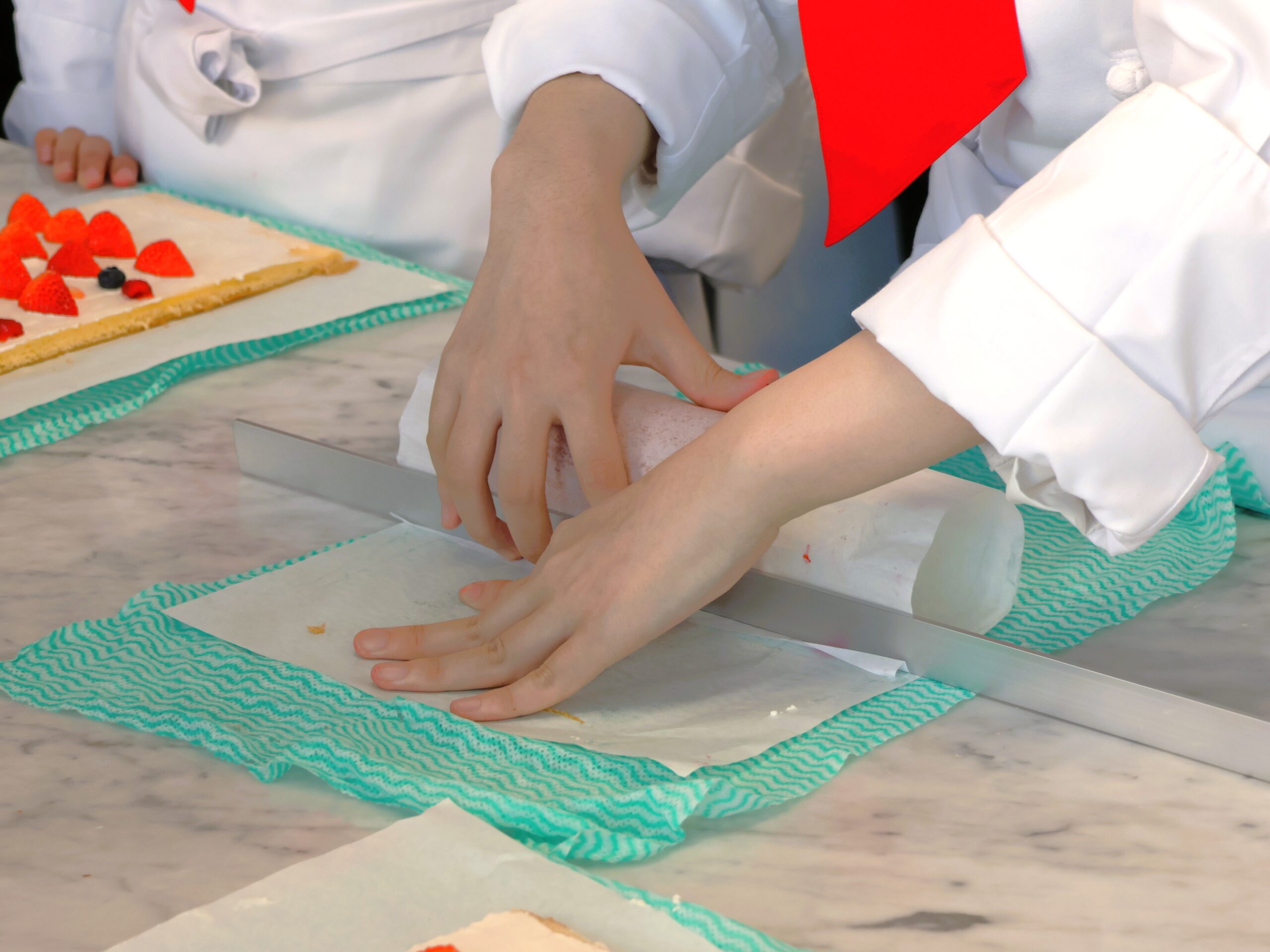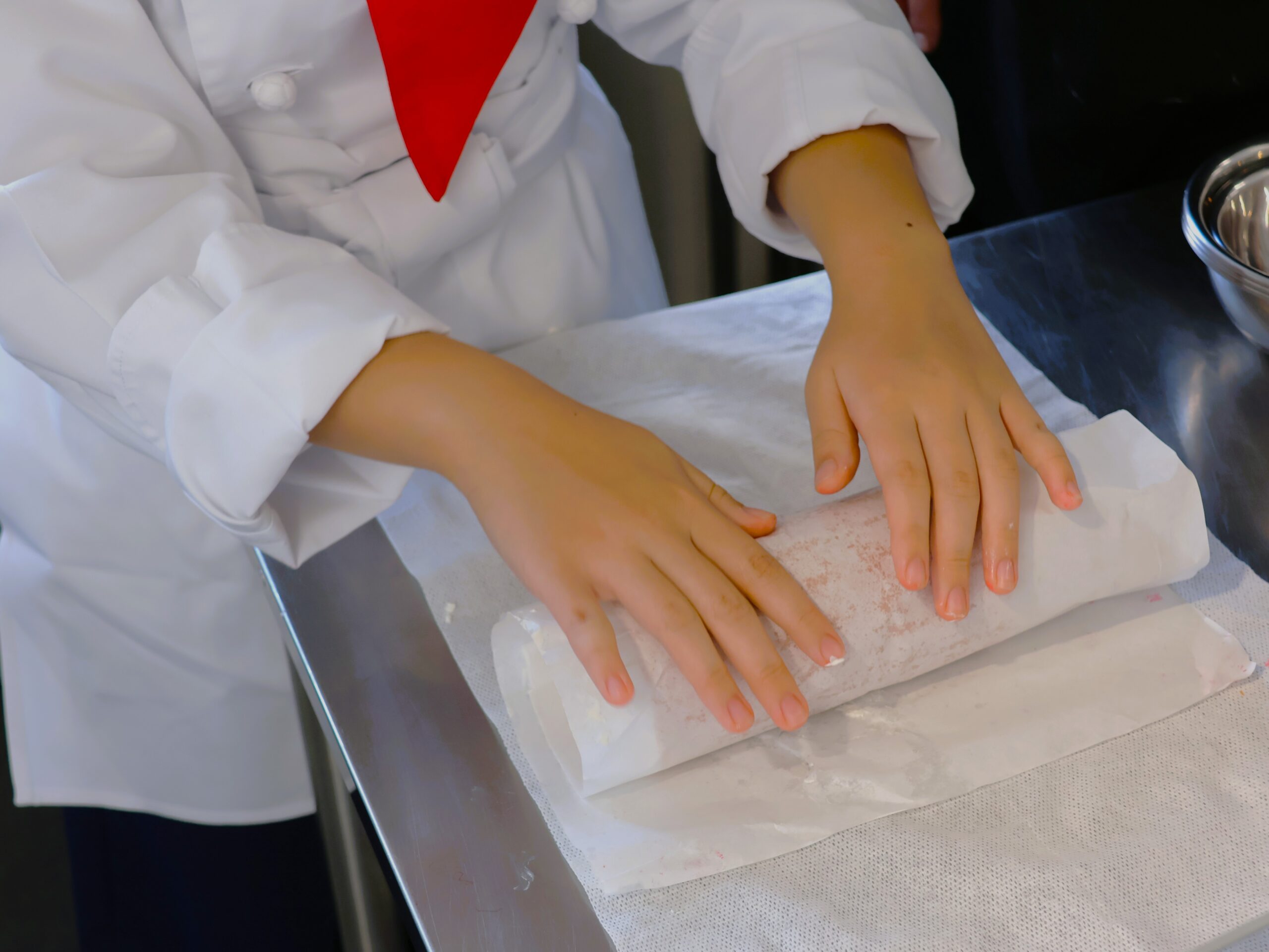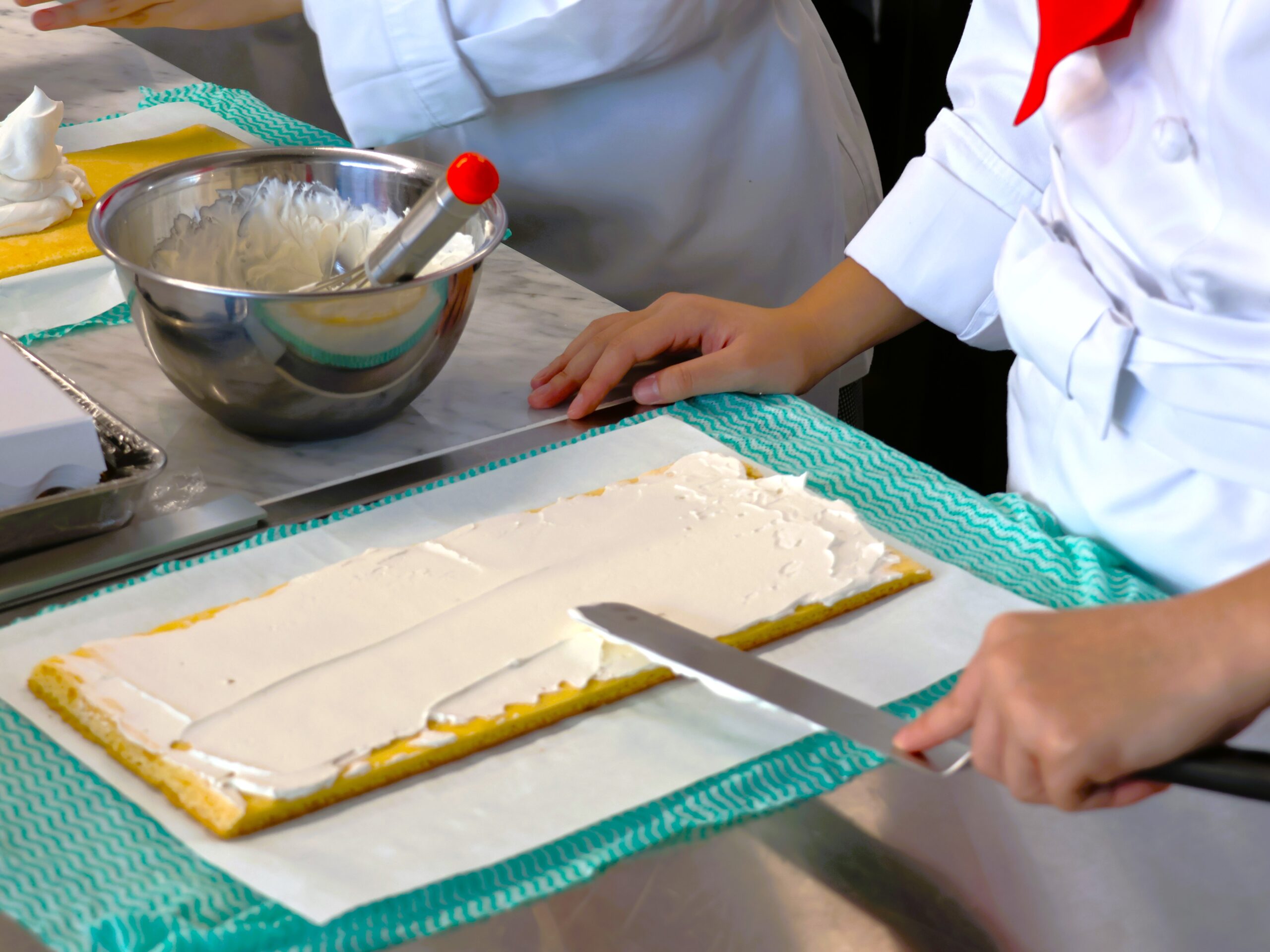 笑顔あふれる実習室では、次々とかわいいロールケーキが完成🎂