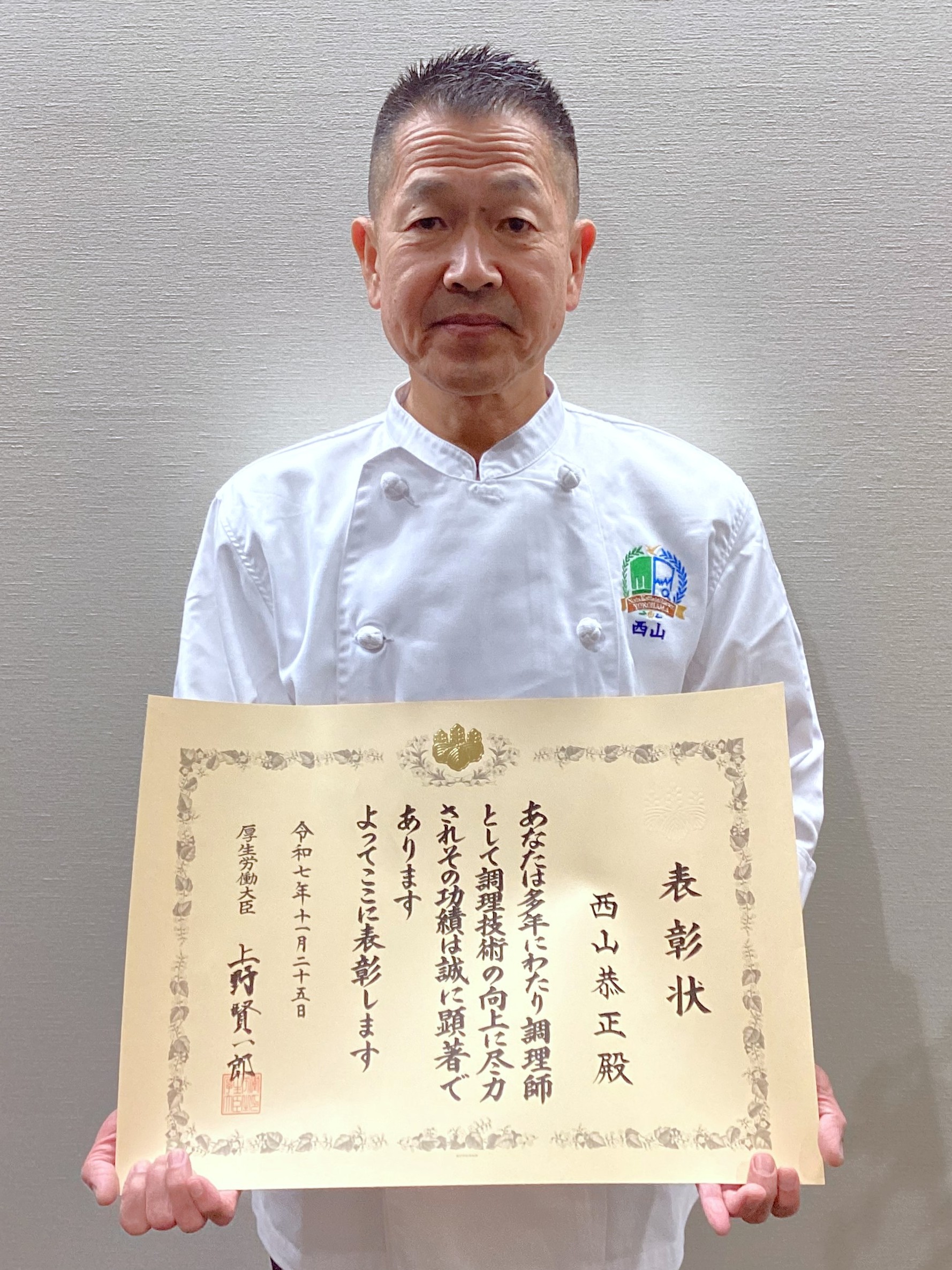 本校調理科教員(西洋料理師範)である 西山恭正先生 が、令和7年度 調理師関係厚生労働大臣表彰 を受彰されました。