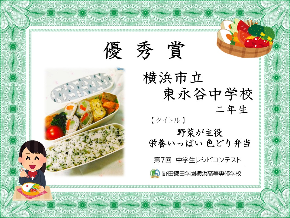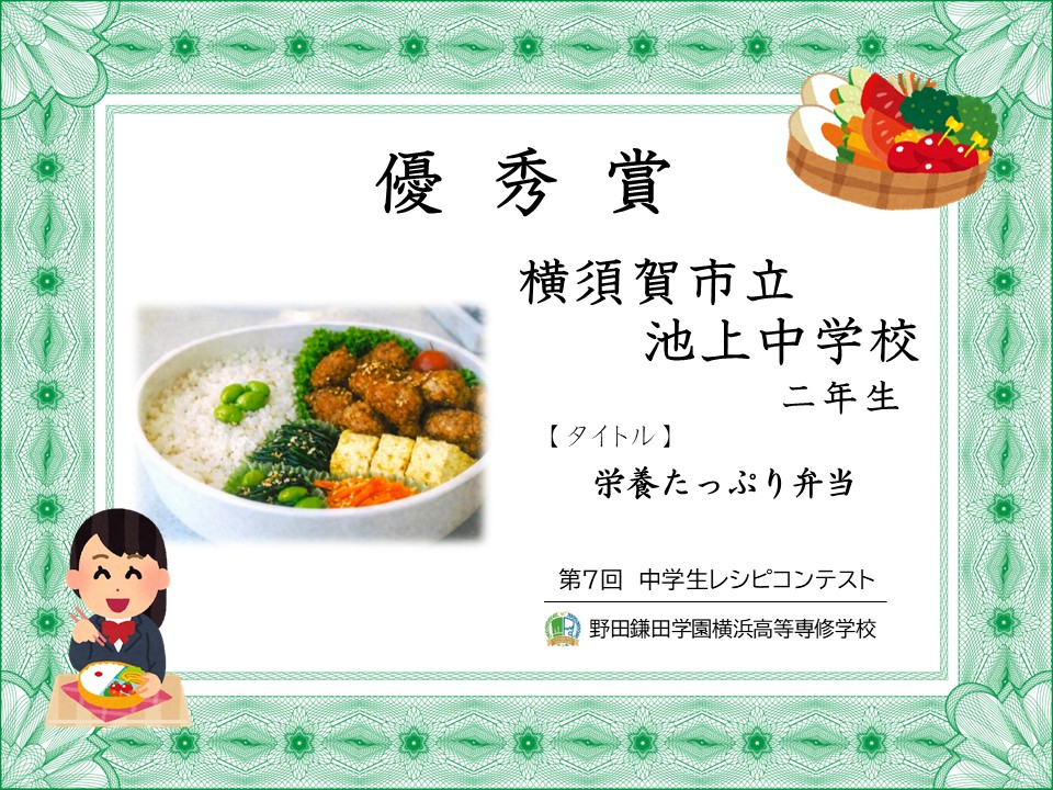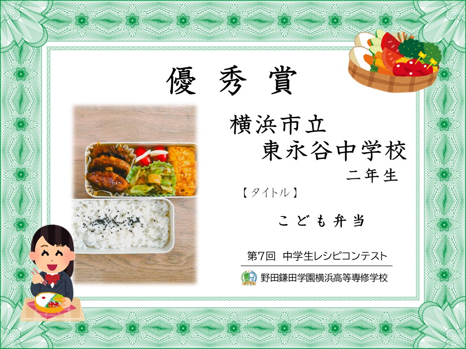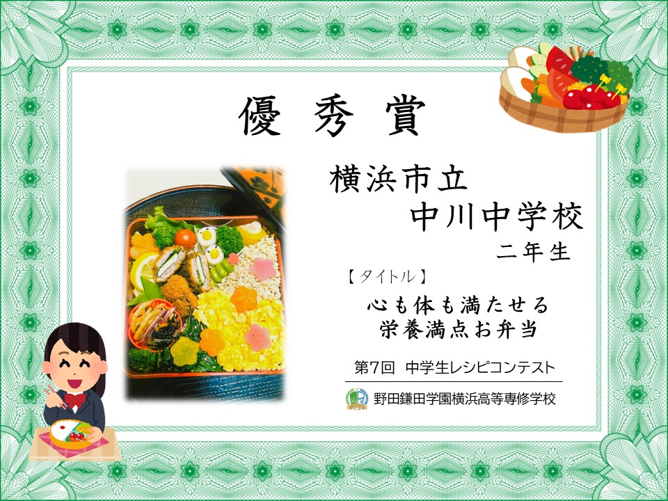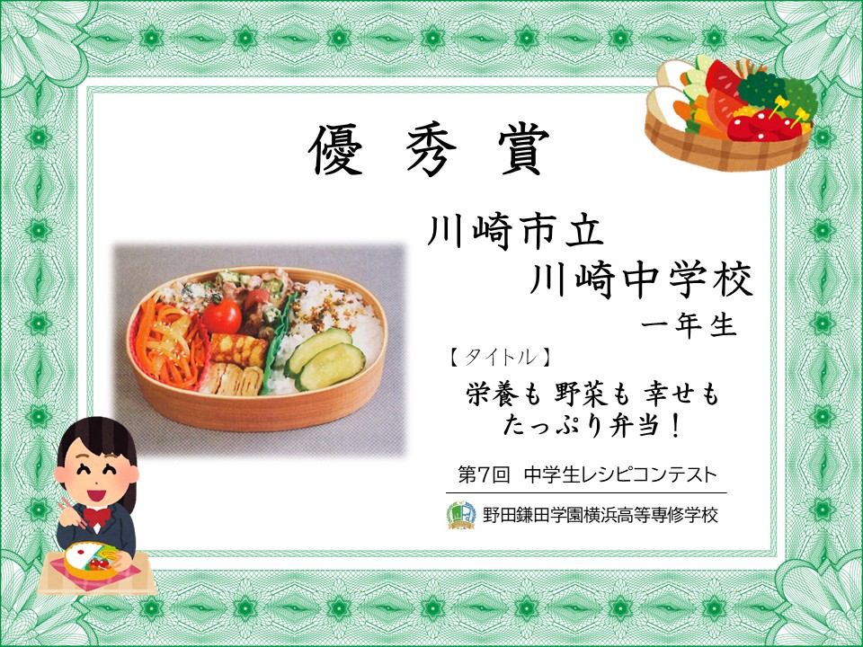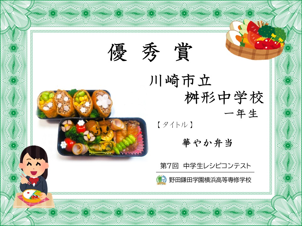 オリジナル弁当を作ろう「第7回 中学生レシピコンテスト」審査結果発表 です。
